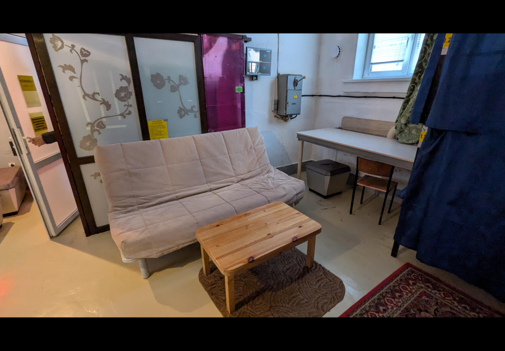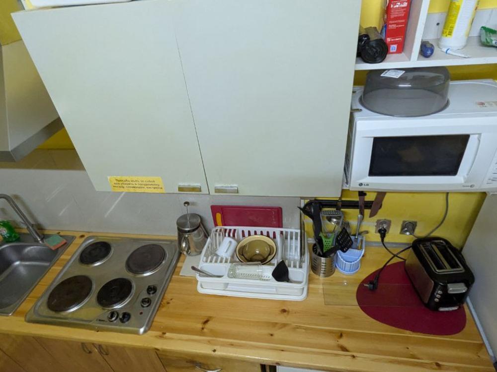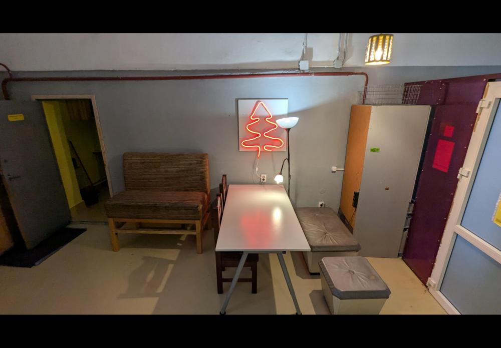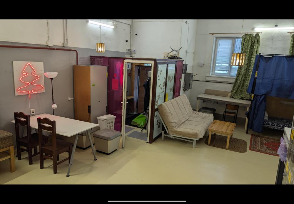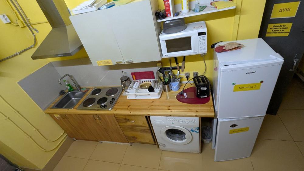 В номере: 2 двухъярусные кровати и 1 доп. место - диван.двуспальный Удобства общие.