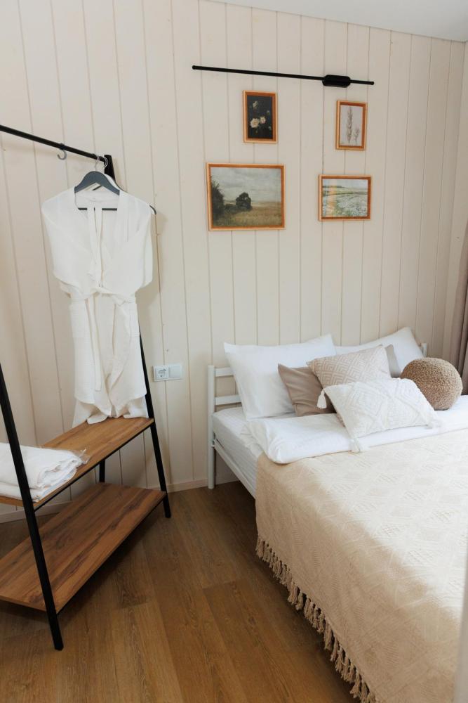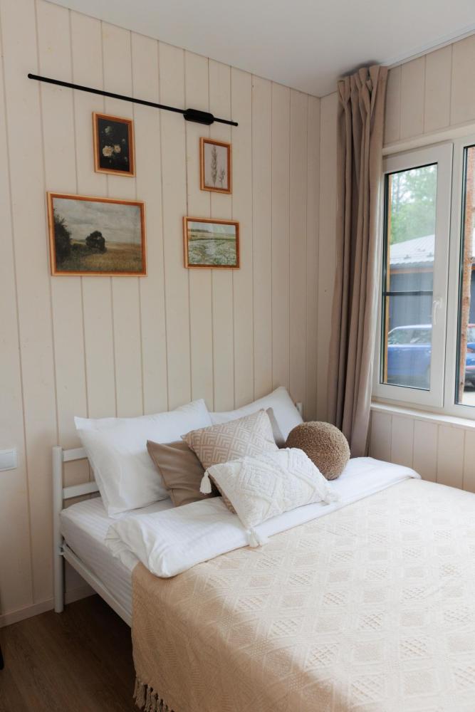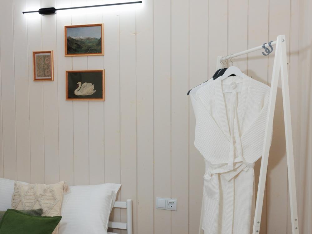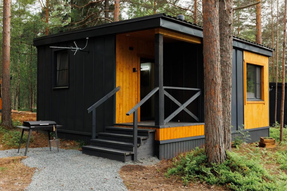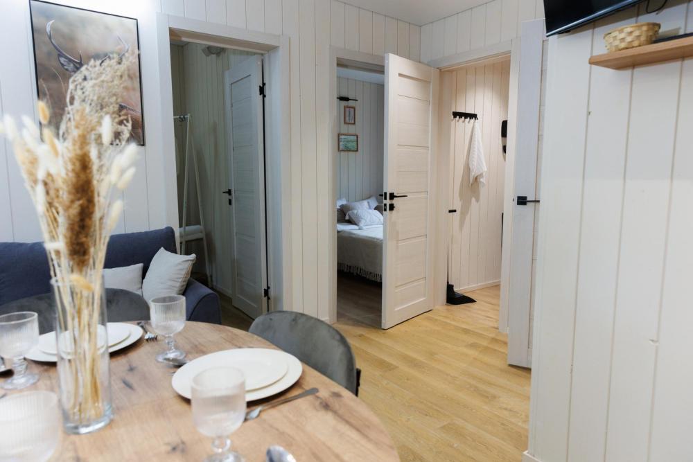 На территории вас ждут бежевые комфортабельные дома площадью 36 м² с панорамными окнами в кухонной зоне и просторной террасой. В каждом доме: – 2 раздельные спальни, в каждой спальне двуспальная кровать с ортопедическим матрасом – гостиная с кухней: телевизор Smart TV, обеденный стол – кухня оснащена всем необходимым: посуда, электрический чайник, варочная поверхность, холодильник, микроволновая печь, турка для кофе – санузел: туалет и душ – у дома своя индивидуальная мангальная зона