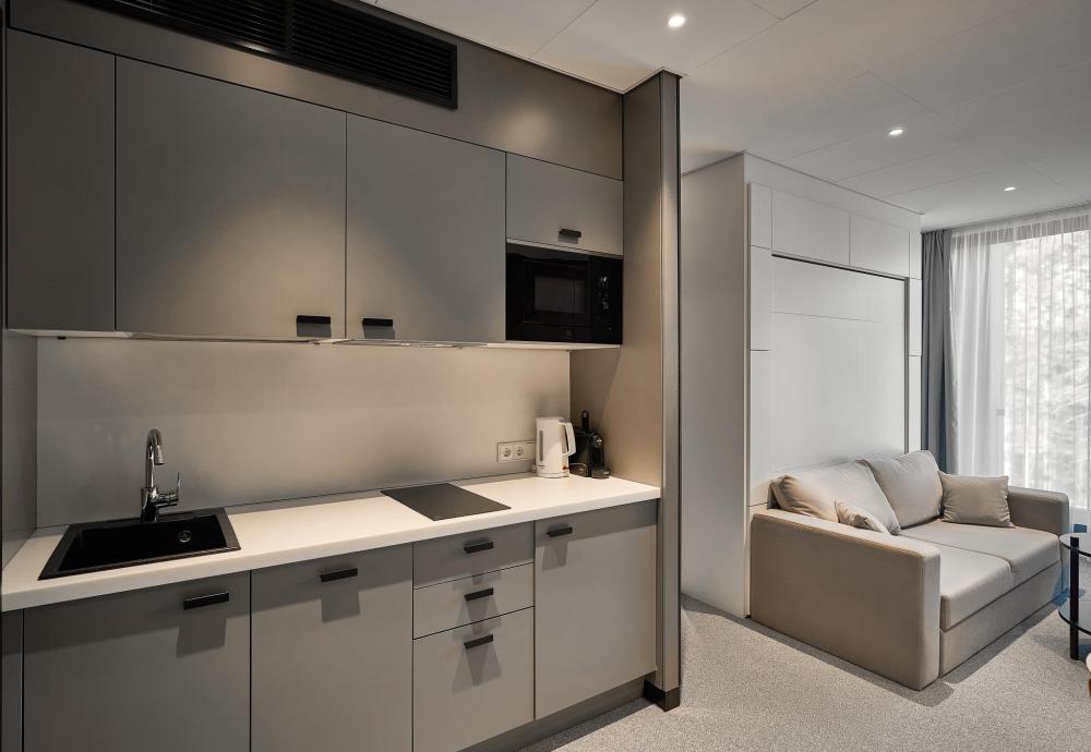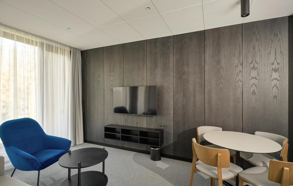 Все "Семейные номера" имеют отдельный вход, террасу и панорамные окна с живописным видом на вековые сосны. Площадь - 40 кв. м. Функциональное зонирование номера — спальня и гостиная-студия с полностью оборудованной встроенной кухней, обеденным столом и зоной отдыха с телевизором. В номере с комфортом могут разместиться до 4-х гостей. Максимально легко диван трансформируется в дополнительное место. В уютной обстановке семейных номеров есть всё необходимое для отдыха: бытовая техника, ЖК-телевизор*, кондиционер, сейф, душевая кабина и платный мини-бар. Прекрасный выбор для семейного отдыха с детьми. *ЖК-телевизор настроен на подключение к сети Wi-Fi «IGORA TV WIFI».