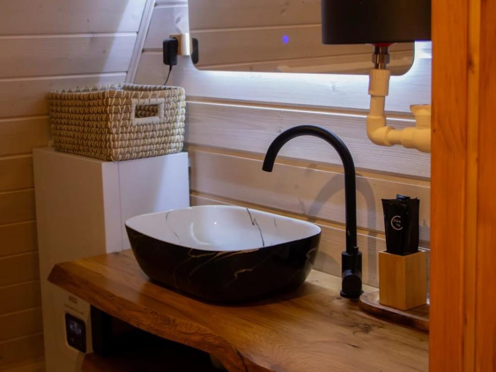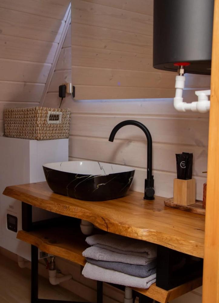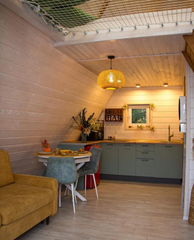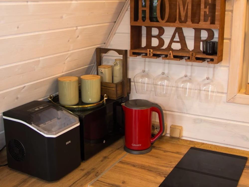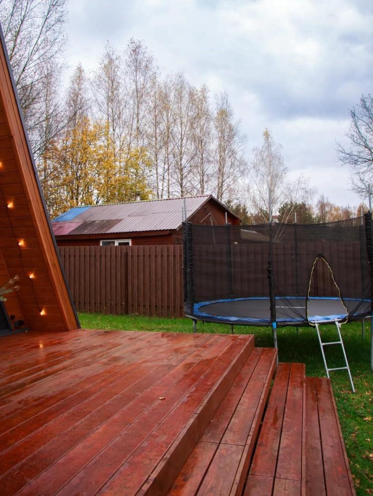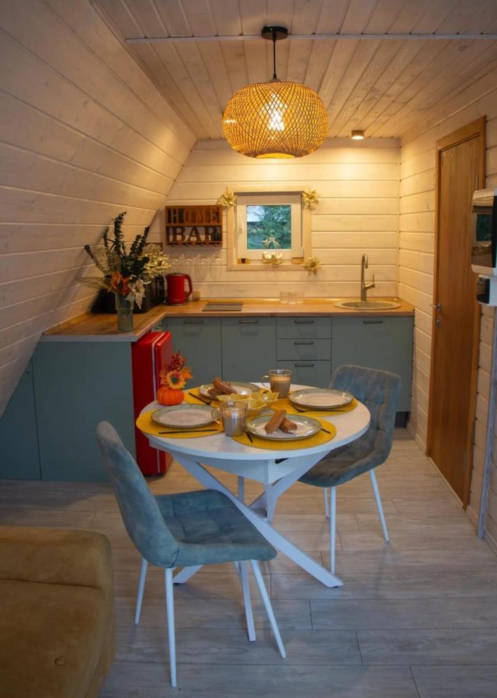 В доме имеется все необходимое для комфортного проживания. На 1-ом этаже: удобный раскладывающийся диван Askona (160*200), стулья, обеденный стол, кухня с индукционной плитой, чайник, кофеварка, холодильник, тостерница, вафельница, микроволновая печь, вся необходимая посуда для приготовления пищи, красивой сервировки стола, телевизор, караоке, настольные игры, книги, зарядки, теплые полы по всему первому этажу. На 2-ом этаже: спальное место Askona 160*200 для двоих, сетка гамак для отдыха. Санузел : оснащен всеми необходимыми туалетными принадлежностями для комфортного пребывания, включая фен. В домика также имеется Wi-Fi, Яндекс станция, smart ТВ