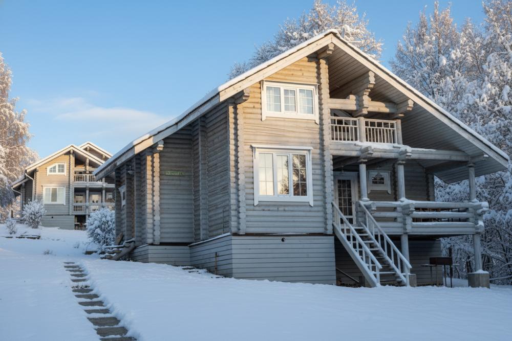 Одноэтажный дом со всеми удобствам, 2 основных спальных места в изолированной спальне и два места на диване в гостиной. Кухня-гостиная: столовая группа, диван (раскладывается), камин. Дом оснащен телевизором и кабельными каналами. В числе удобств WI-FI, холодильник, чайник, плита, духовка, микроволновка, необходимая утварь на кухне, кофемашина (капсулы приобретаются отдельно), кондиционер. В собственной ванной комнате установлена душевая кабина; Мангал, шампура, решетка для жарки, детская кроватка с матрасиком (без детского постельного белья), дополнительный комплект белья на дополнительное место предоставляется бесплатно по запросу. Дополнительные услуги: Предусмотрено питание за дополнительную плату (завтрак, обед, ужин, банкетное меню); Аренда "Таёжной бани"(до 6 чел.), "Большой бани"(до 15 чел.); Прокат инвентаря зима/лето: сапы, байдарки, велосипеды, лодки, квадроциклы, лыжи, тюбинг, каток, снегоходы. На территории обустроена детская игровая площадка, Панда парк, Пруд, Универсальная спортивная площадка. В окрестностях популярны велосипедные прогулки и рыбная ловля.