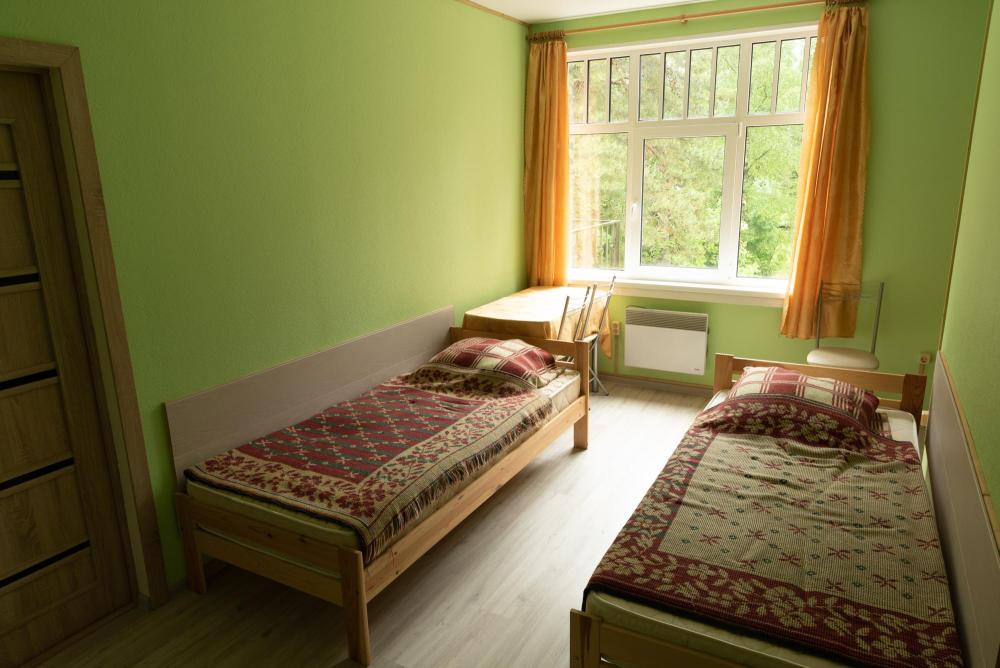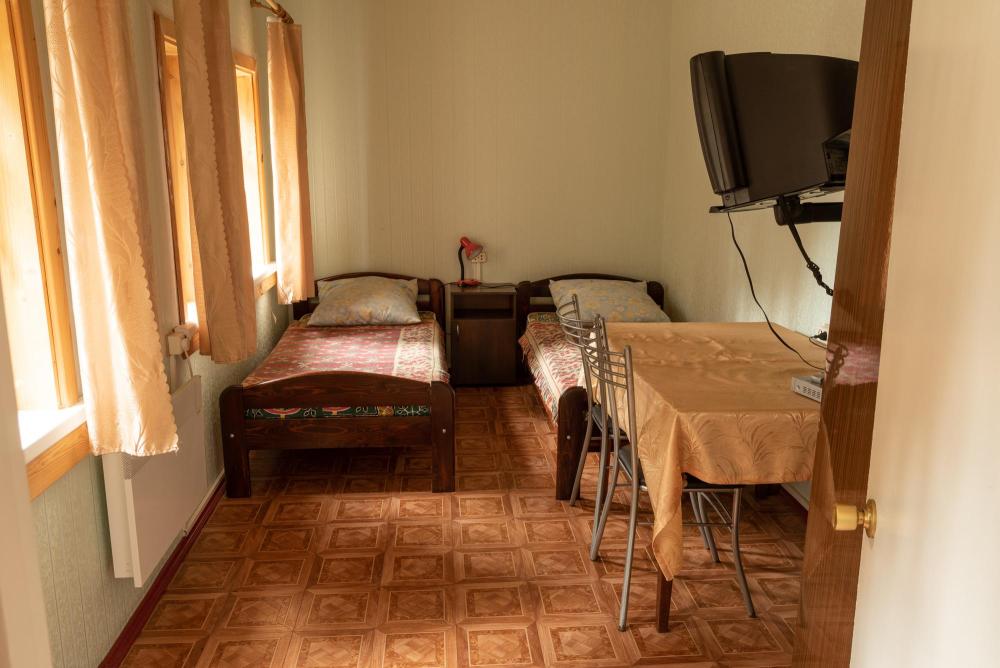 Отличный вариант для друзей или коллег, ценящих личное пространство и удобство. Апартаменты оборудованы собственной кухней и холодильником, а также всем необходимым для приятного отдыха. В номере есть телевизор, зеркало, вместительный шкаф для вещей. Санузел общий, расположен на этаже