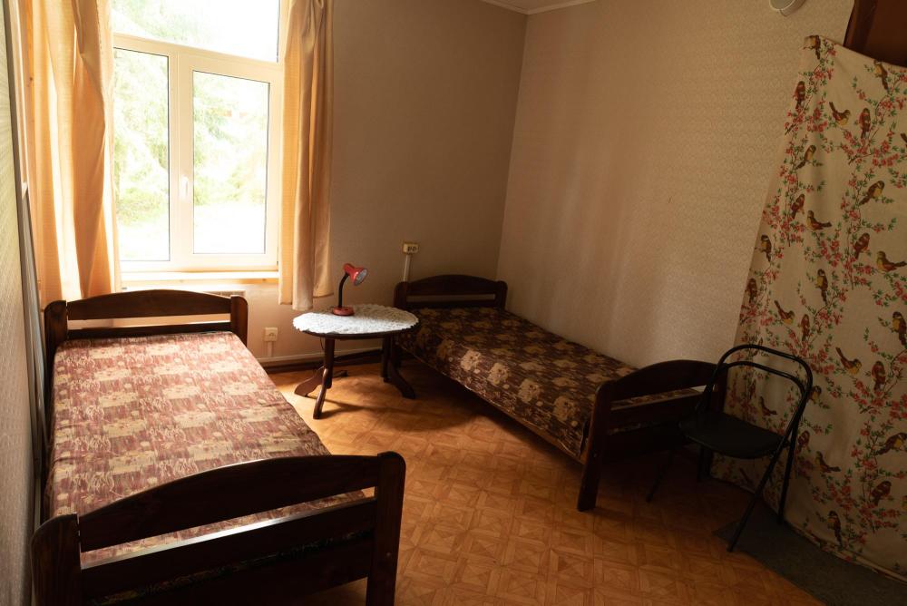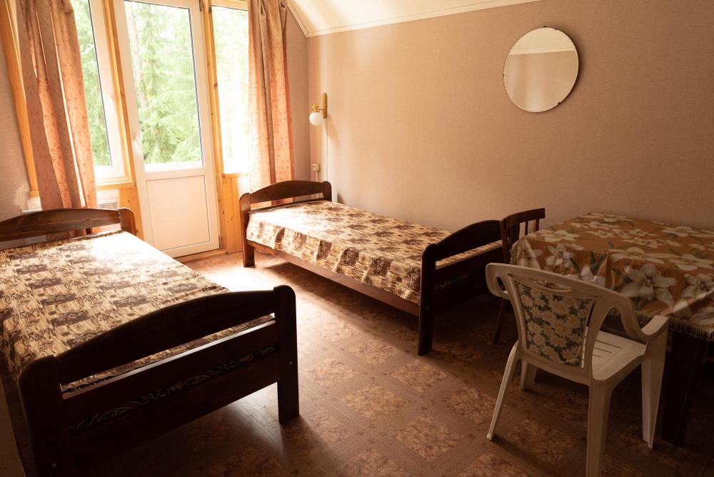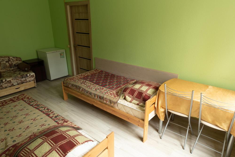 Просторный и функциональный номер для компании друзей или семьи. Есть все необходимое для проживания: 3 раздельные кровати, холодильник, телевизор, обеденный стол, санузел на этаже. Отличный вариант для путешественников, ценящих простор и функциональность.