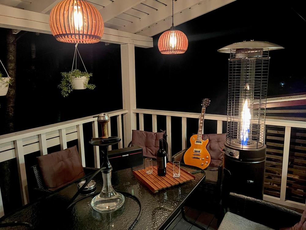 Бревенчатый дом с панорамным остеклением вмещает до 8 человек. В коттедже: кухня-гостиная, 3 спальни на 2 этаже, 2 санузла, зона отдыха с библиотекой, массажным креслом и кинопроектором. Основные спальные места: 2 двуспальные и 4 односпальные кровати. Для комфортного проживания есть: вся необходимая посуда, плита газовая, холодильник, чайник, микроволновка, кофеварка капельная для молотого кофе, посудомойка, фен, стиральная и сушильная машины, утюг и гладильная доска. Постельное белье и полотенца предоставляются. В доме теплые полы. Есть терраса с мебелью, мангальная и костровая зона под навесом. Возможно размещение 2 гостей в беседке по согласованию.