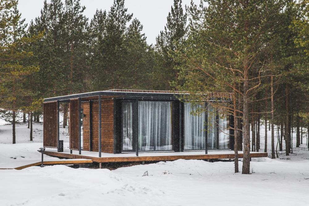 Номер "Студия" – это отдельный модуль площадью 34 кв. м., расположенный вдоль береговой линии Вуоксы. Благодаря удобному зонированию пространства, в доме есть спальня и гостиная-студия с полностью оборудованной встроенной кухней, обеденным столом и зоной отдыха с телевизором. Номер рассчитан на 2 гостей с возможностью предоставления одного дополнительного места для гостей до 14 лет (диван). В номере "Студия" не предусмотрено проживание с животными.