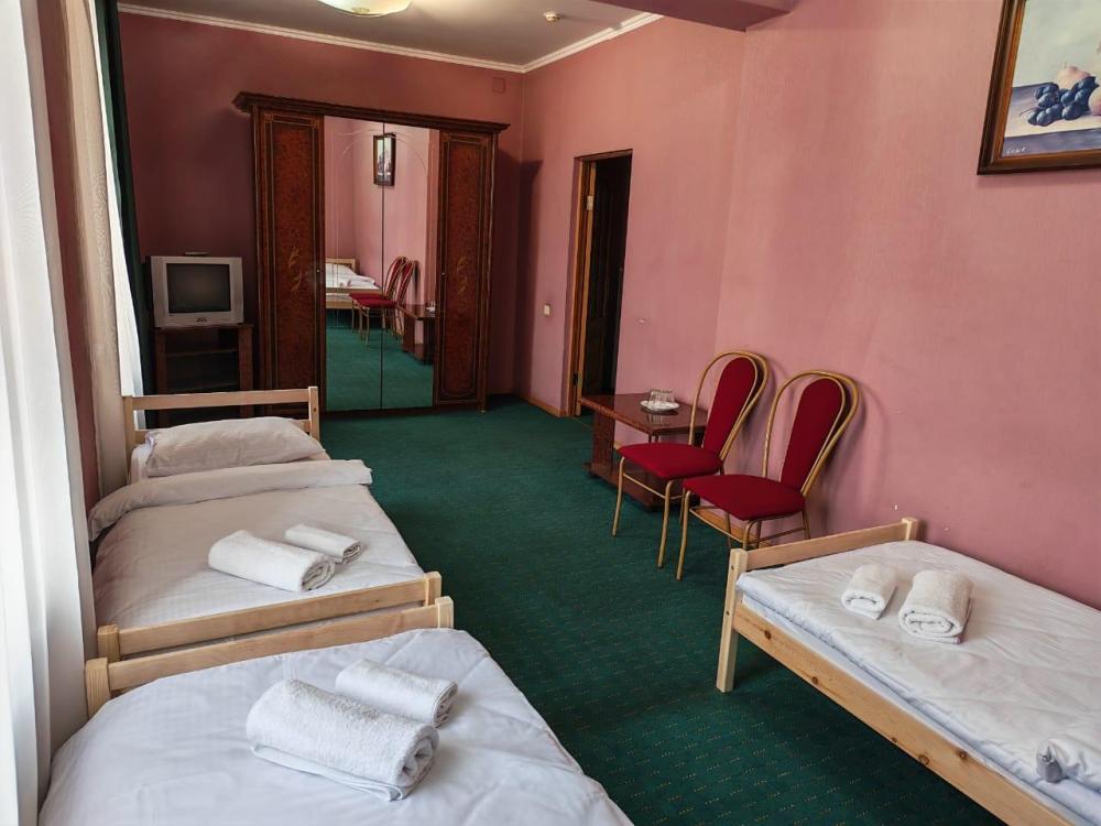 Уютный номер , оснащен всем необходимым для Вашего комфорта! В номере четыре 1,5-спальные кровати, телевизор, холодильник, столик журнальный, тумбочки, комод, шкаф, стулья. Для хранения вещей большой шкаф. Вкусные завтраки проходят внизу на первом этаже в гостинице , в банкетном зале "Event Hall" Удобное месторасположение: хорошая транспортная развязка, в шаговой доступности супермаркеты, фуд-корт, драмтеатр.