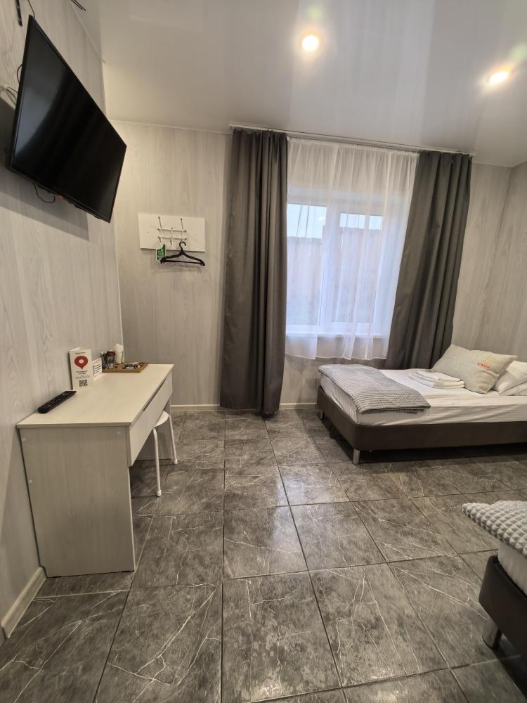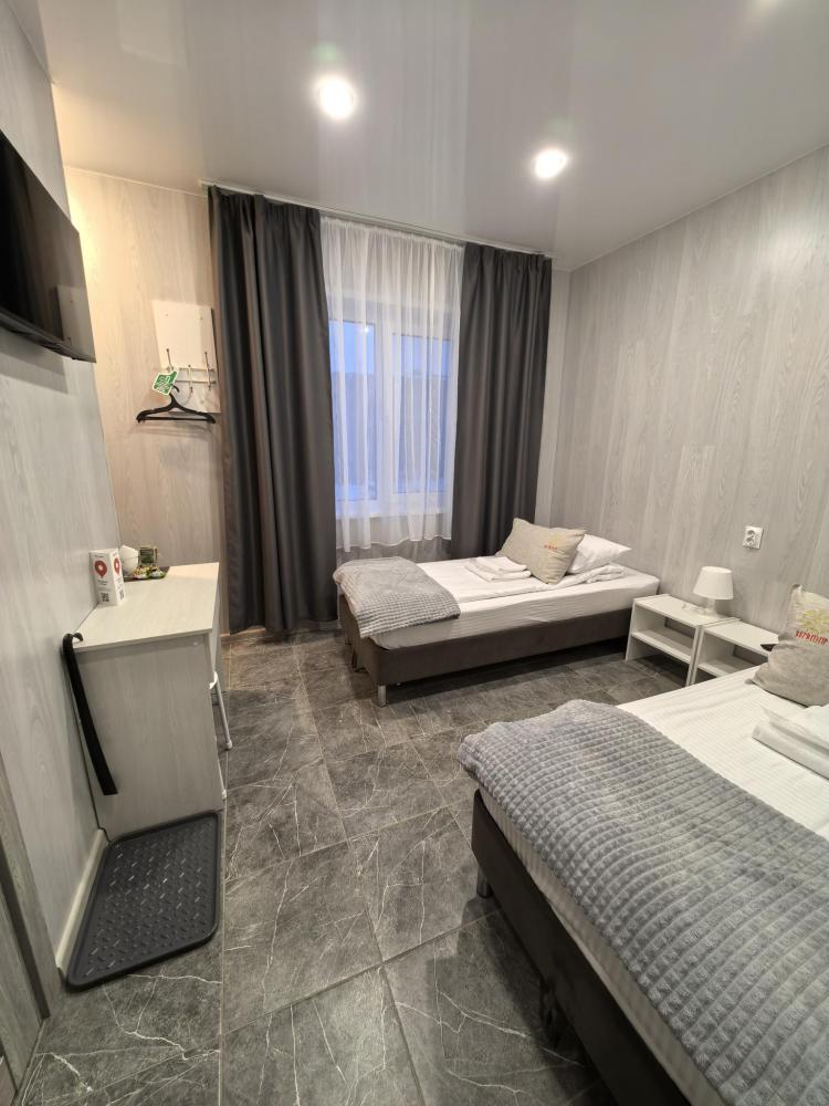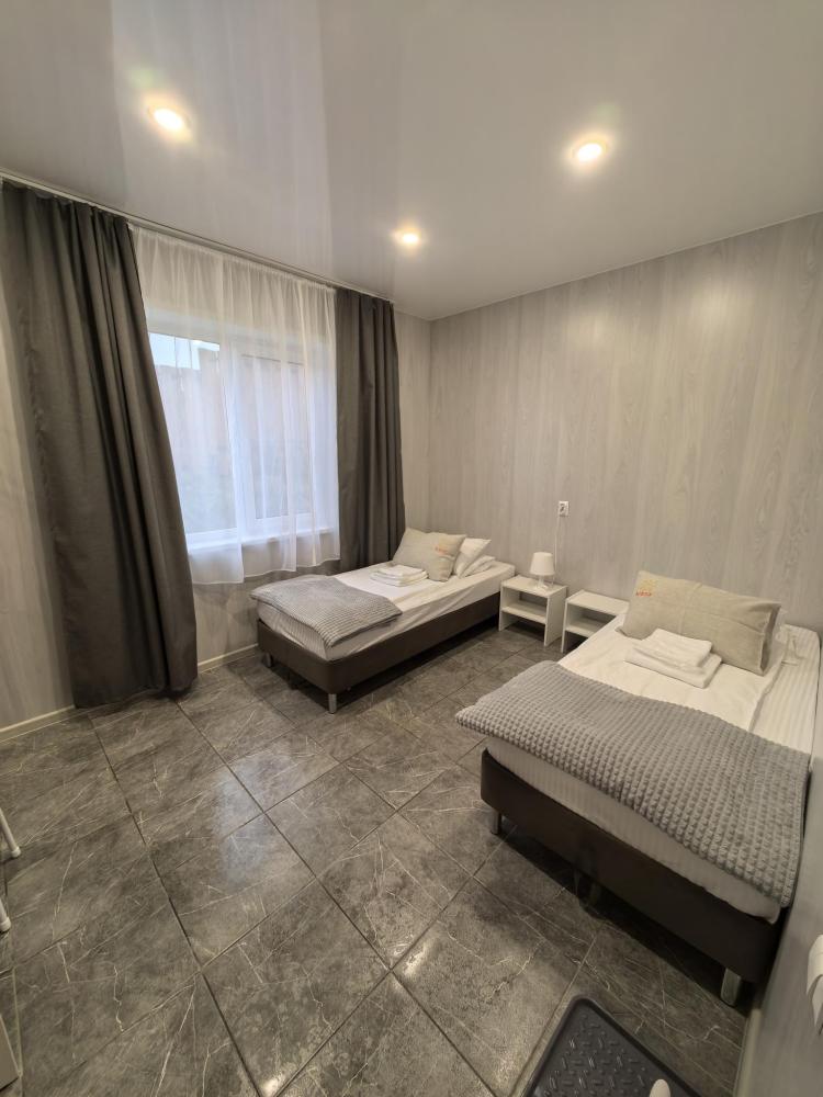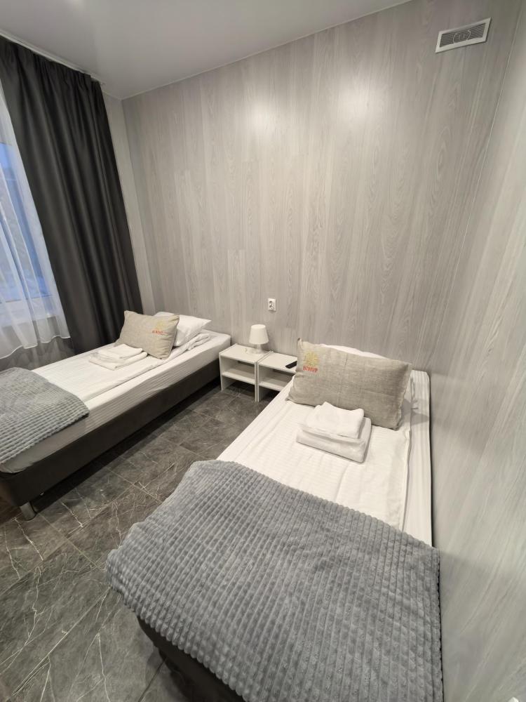 Для проживания предлагаются комфортабельные, уютные, теплые комнаты со всеми удобствами. Комната оснащена современной мебелью, телевизором, двумя односпальными кроватями с анатомическими матрасами, которые гарантируют комфортный сон. На каждого гостя предоставляется комплект полотенец. Удобства в комнате : душ, туалет, полотенца, гель для душа, шампунь.