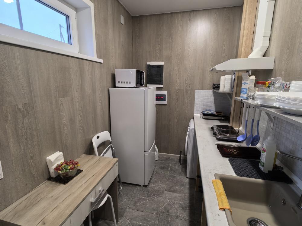 Постояльцы могут воспользоваться небольшой кухней, общего пользования, где есть все необходимое для приготовления пищи: плита, холодильник, посуда, чайник, микроволновая печь. Чай, кофе, сахар, сладости. На придомовой территории предусмотрена парковка для легкового и малогабаритного транспорта.