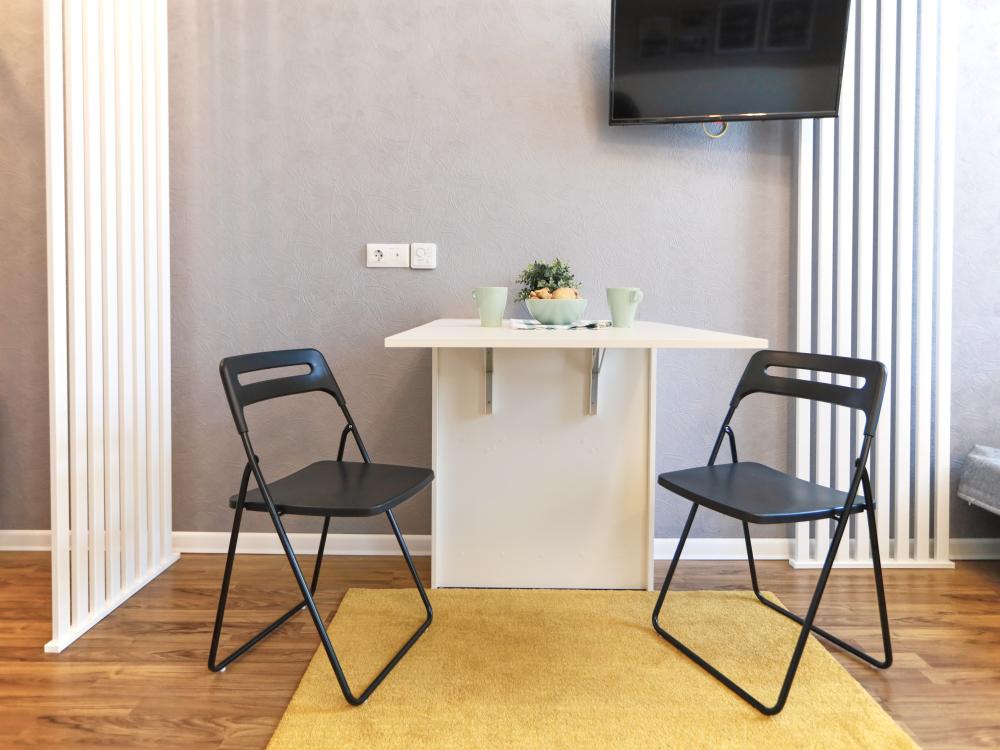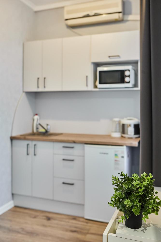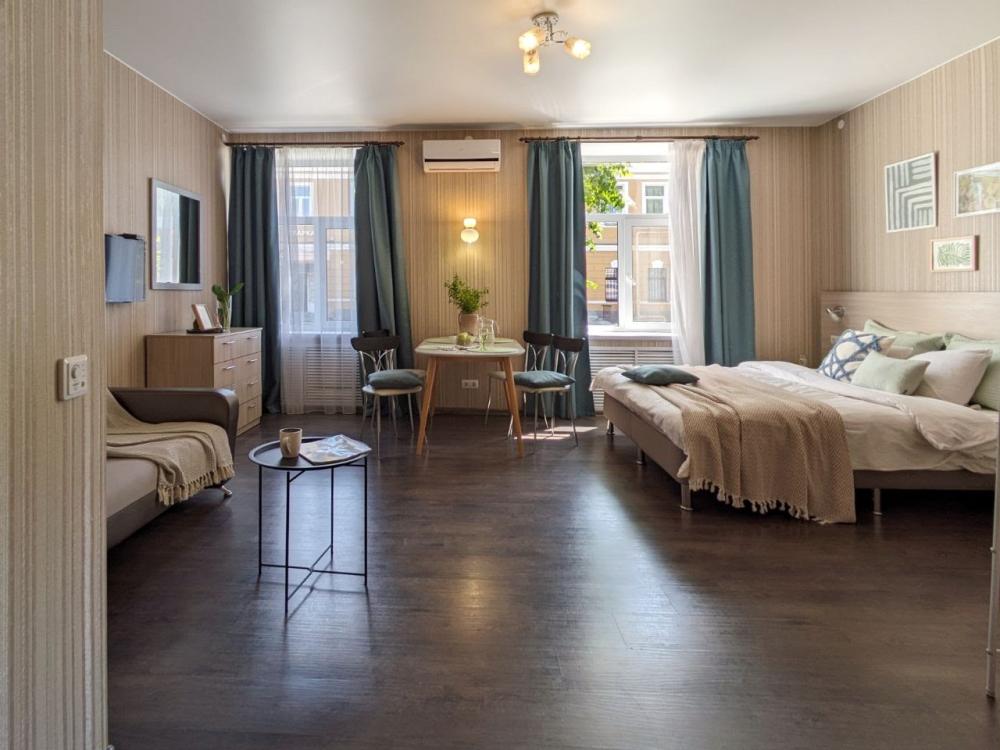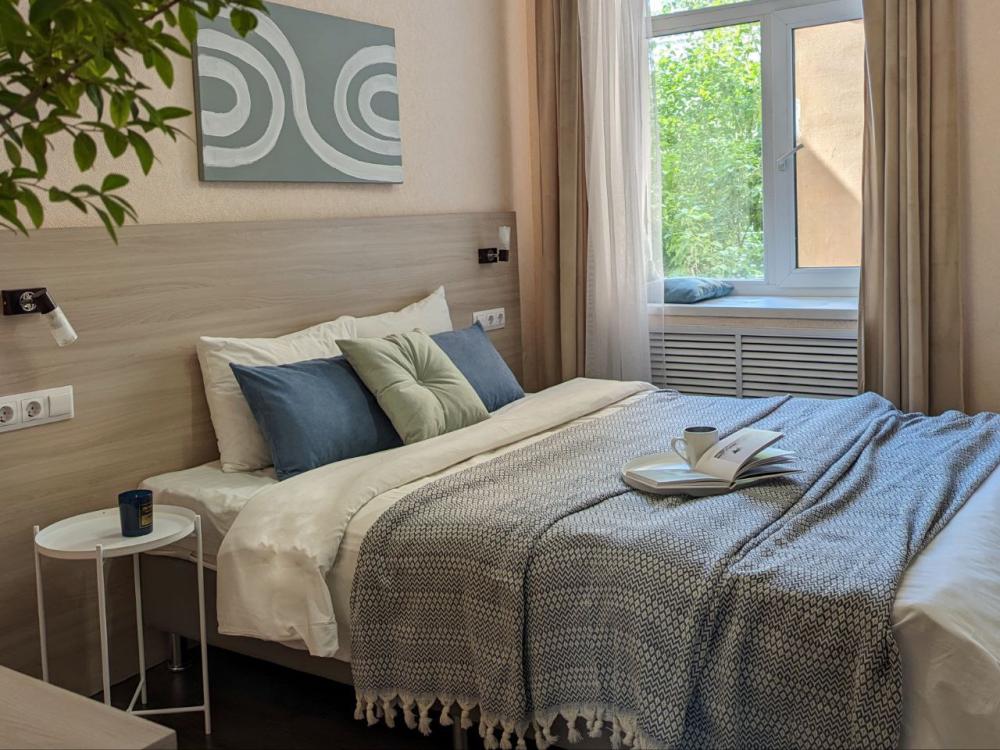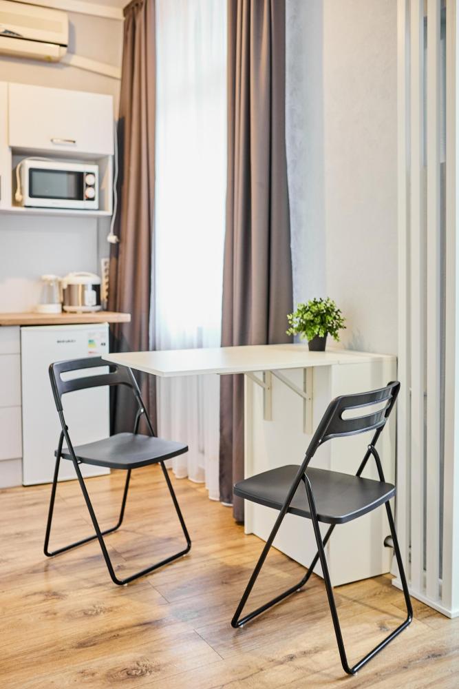 Современная студия, ремонт осуществлен в 2021 году. В студии для удобства есть кондиционер, фен, утюг, гладильная доска. Мини кухня вмещает СВЧ, мультиварка, набор посуды, чайник, индукционная плитка.