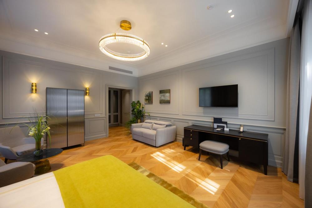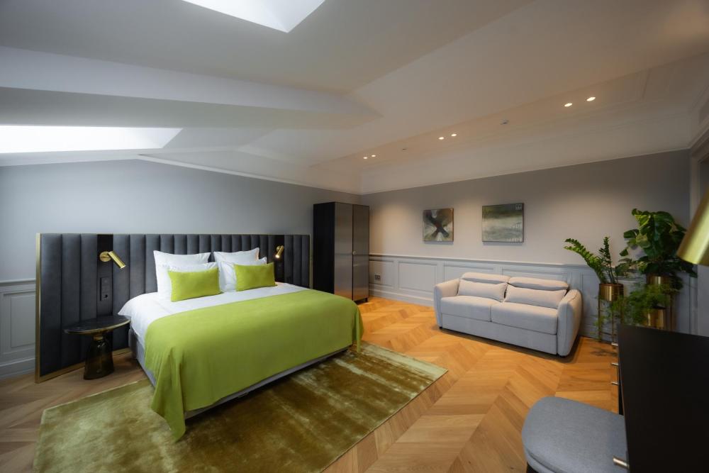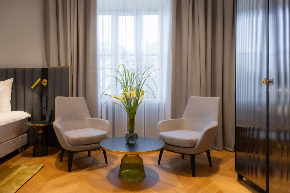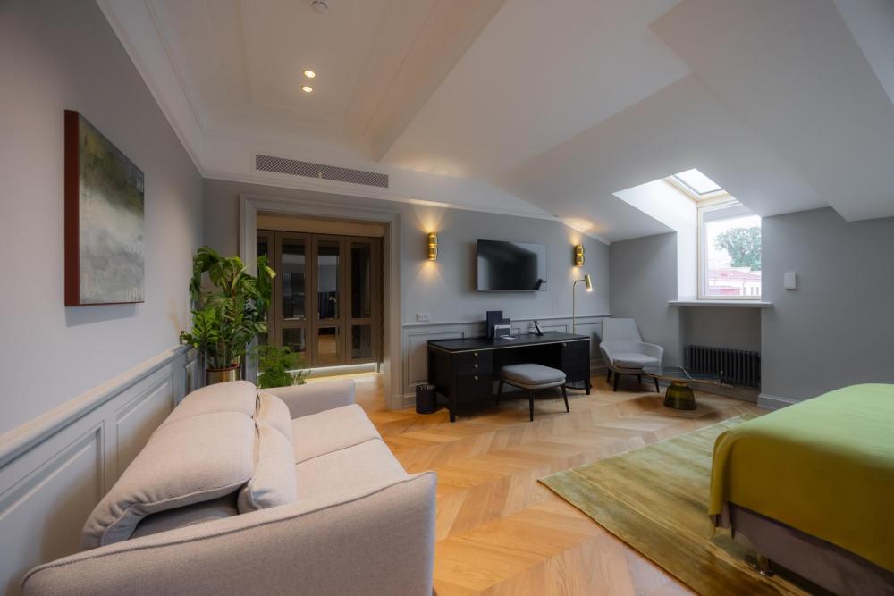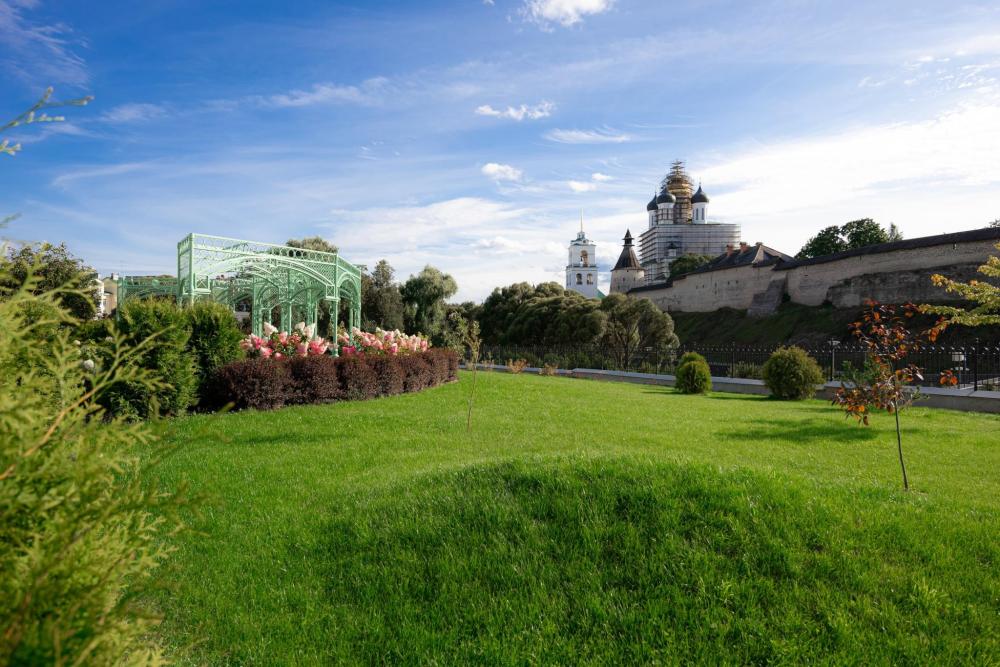 Просторный двухкомнатный номер с отдельной спальней и гостиной с живописным видом на Псковский кремль. Кровать king-size, элегантная мебель и удобная рабочая зона создают комфортные условия как для отдыха, так и для деловых поездок. Идеален для тех, кто ищет уединения в окружении природы — в самом центре города. Один из номеров, расположенный на первом этаже, имеет собственную террасу с видом на крепостную стену и башню Кремля.