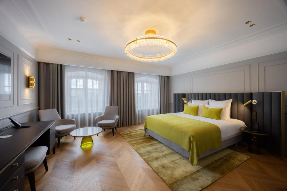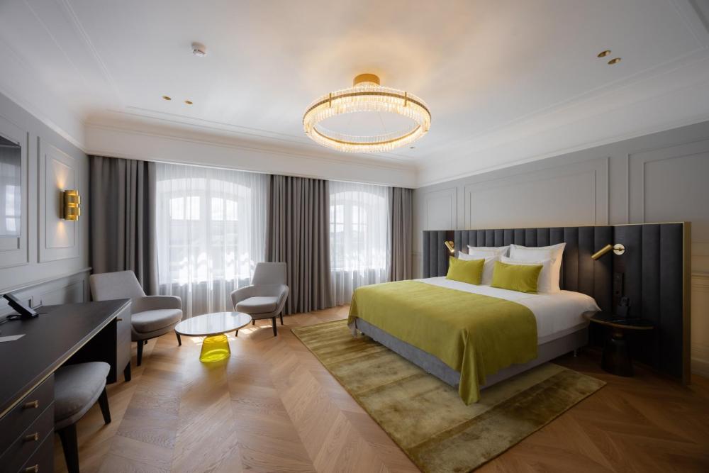 Просторные номера с видом на Псковский кремль. Удобная кровать, элегантная мебель и функциональная рабочая зона обеспечивают идеальные условия как для отдыха, так и для работы. Исторический пейзаж за окном подчёркивает атмосферу уединенного комфорта.