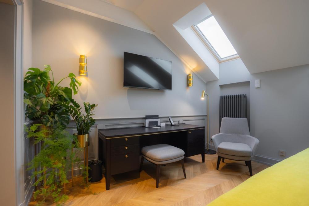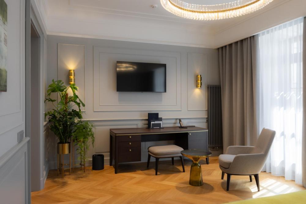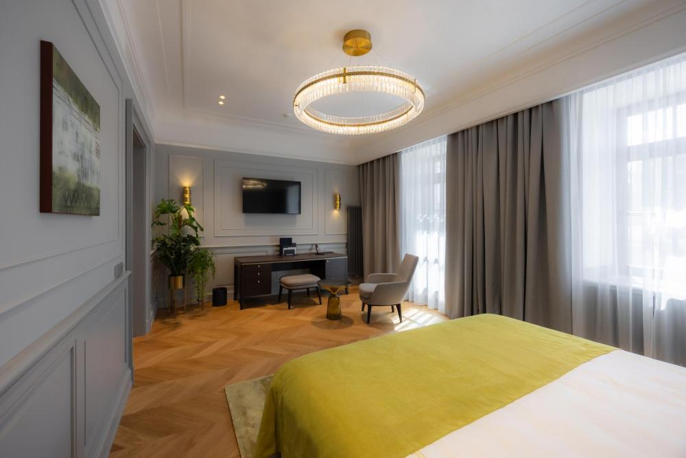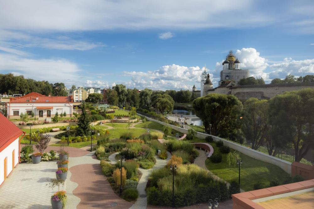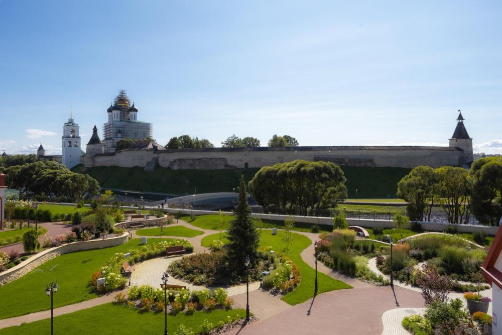 Светлый и просторный номер с видом на Псковский кремль или парк. Удобная кровать, рабочая зона и элегантный интерьер обеспечивают идеальные условия как для отдыха, так и для работы. Исторический пейзаж за окном и высокие стандарты комфорта создают атмосферу настоящей исключительности.