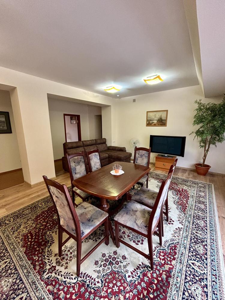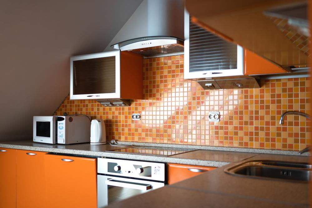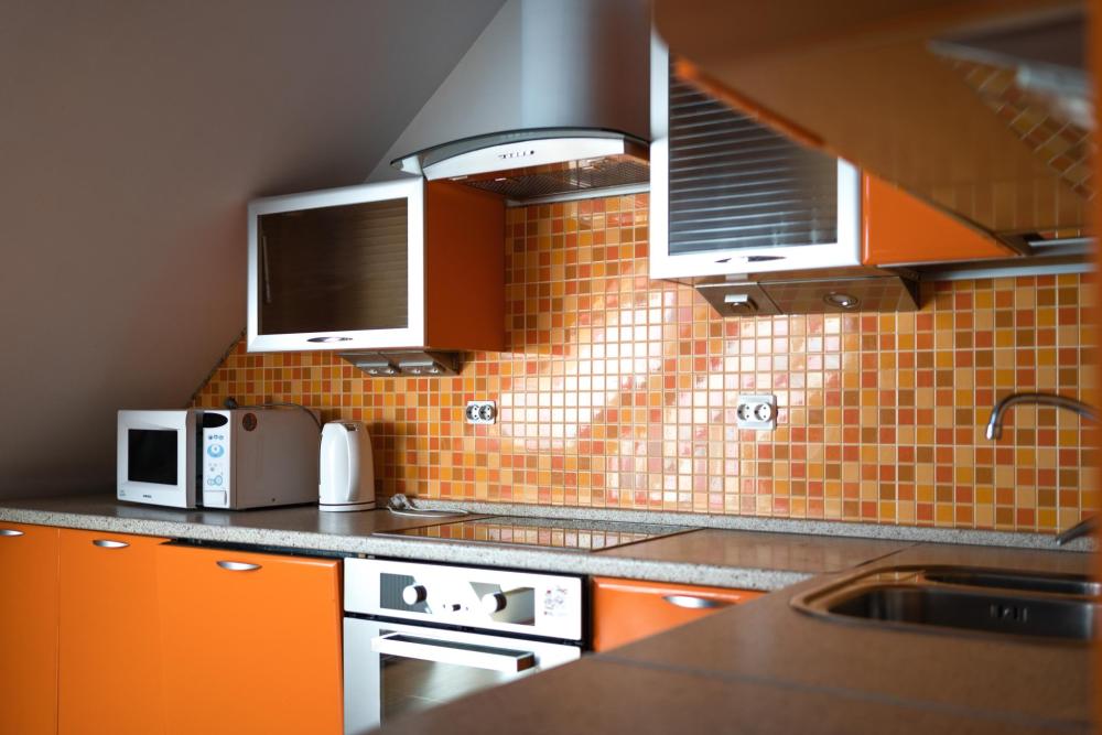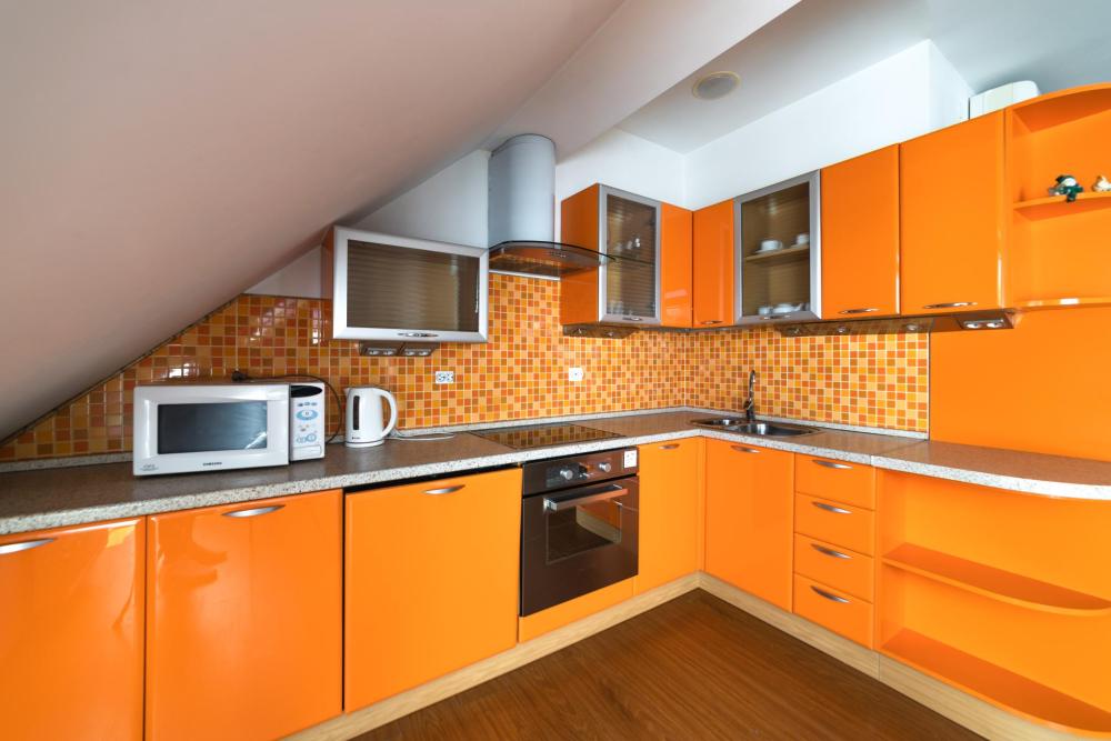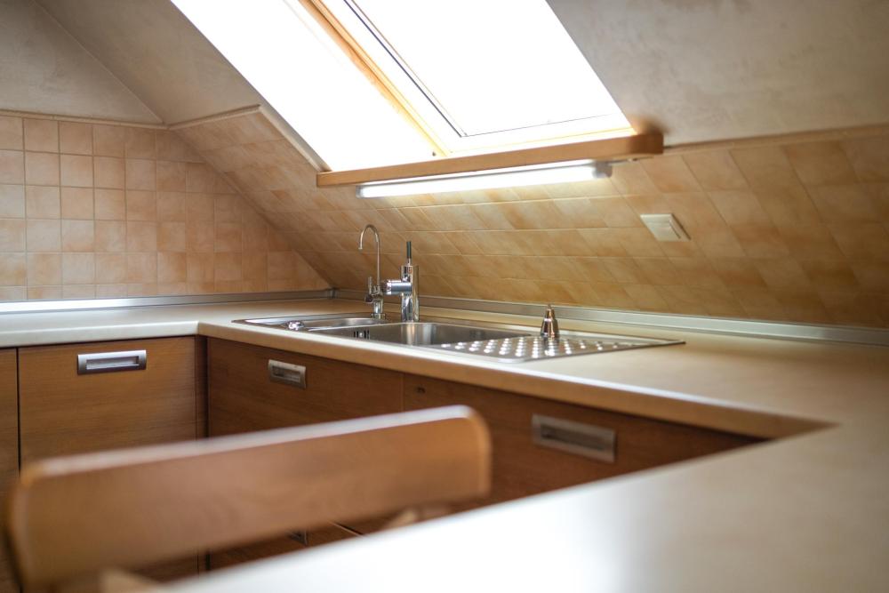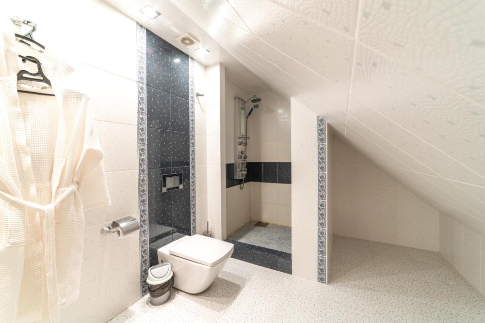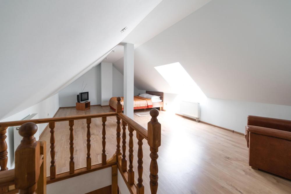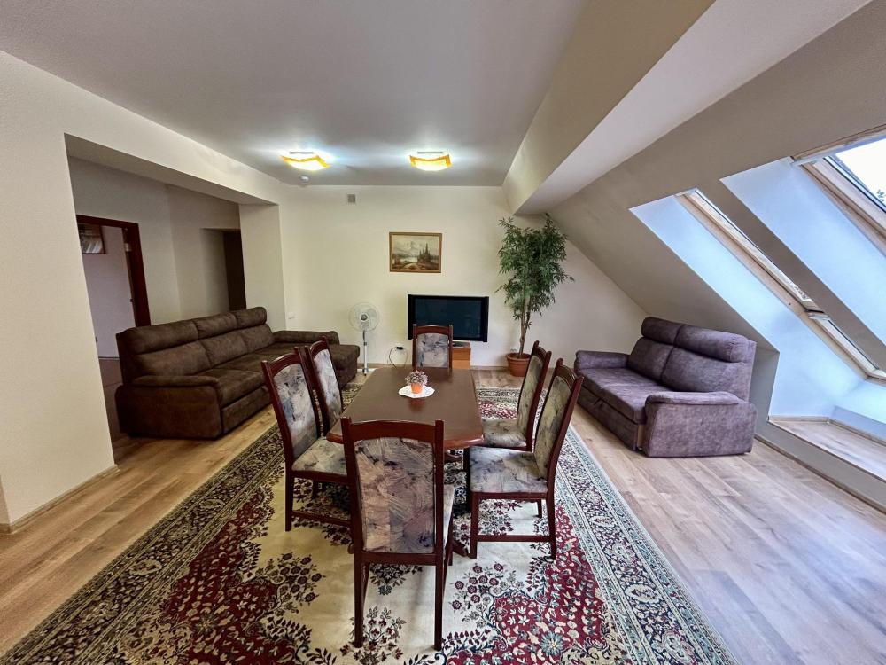 Двухуровневые апартаменты для 6-ти взрослых Апартаменты с кондиционером располагаются на двух уровнях (второй уровень – мансарда). Номер имеет 3 спальни и 3 санузла. В общей кухне-гостиной со всей необходимой бытовой техникой, можно приготовить еду и собраться за общим столом или комфортно расположиться на диванах перед TV. В собственной ванной комнате имеются бесплатные косметические принадлежности, предоставляются халаты.