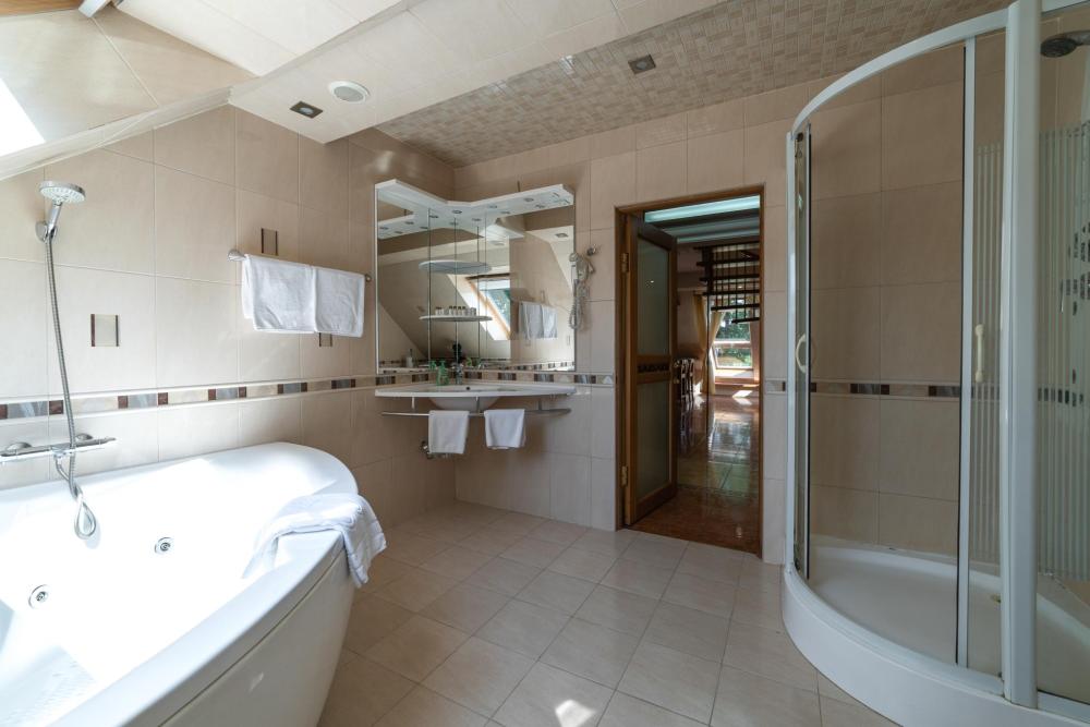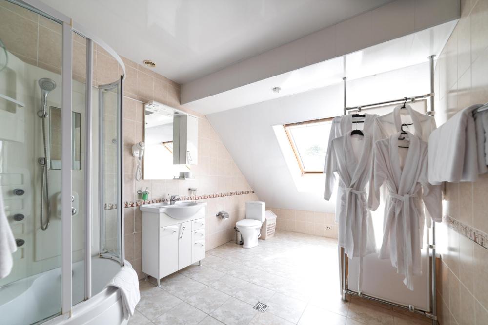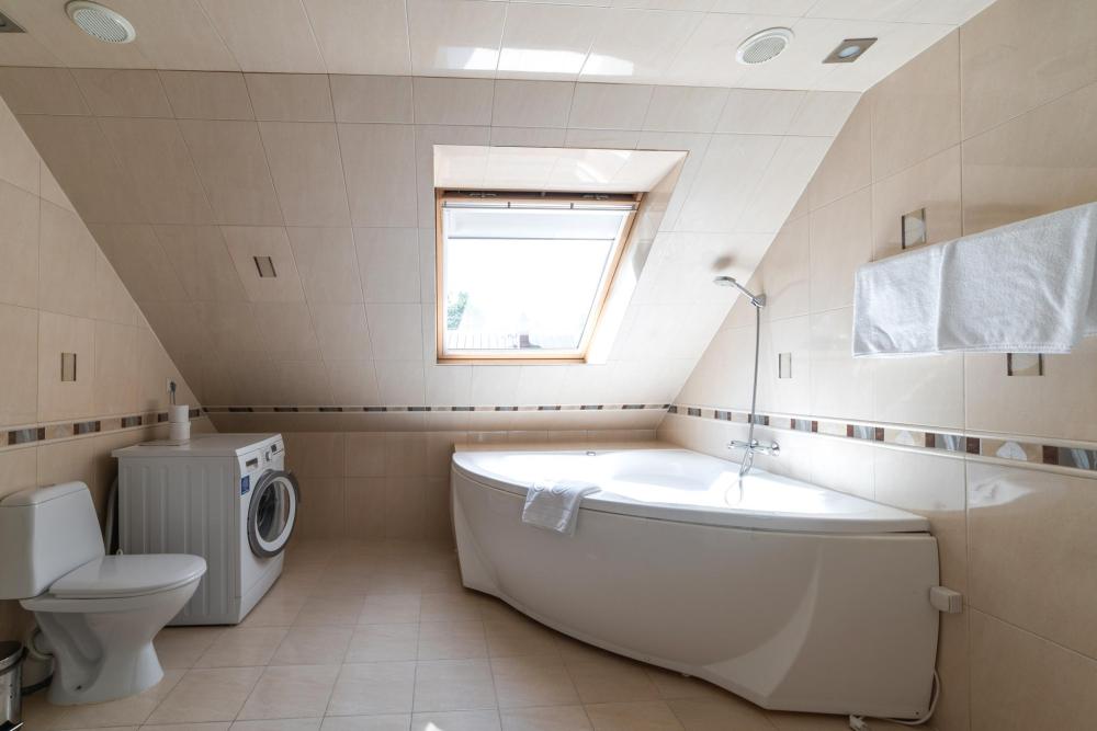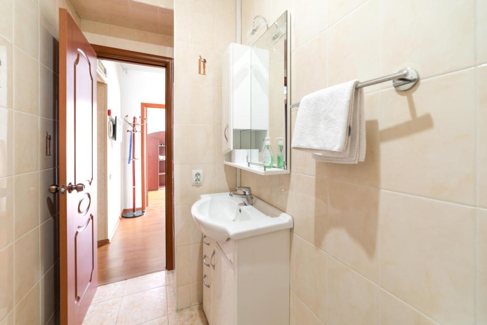 Двухуровневые апартаменты для 4-х взрослых апартаменты с кондиционером располагаются на двух уровнях (второй уровень – мансарда). Номер имеет 2 спальни и 2 санузла, в одном из которых – гидромассажная ванна-джакузи и стиральная машина. В общей кухне-гостиной со всей необходимой бытовой техникой, можно приготовить еду и собраться за общим столом или комфортно расположиться на диванах перед плазменным TV. В собственной ванной комнате имеются бесплатные косметические принадлежности, предоставляются халаты.