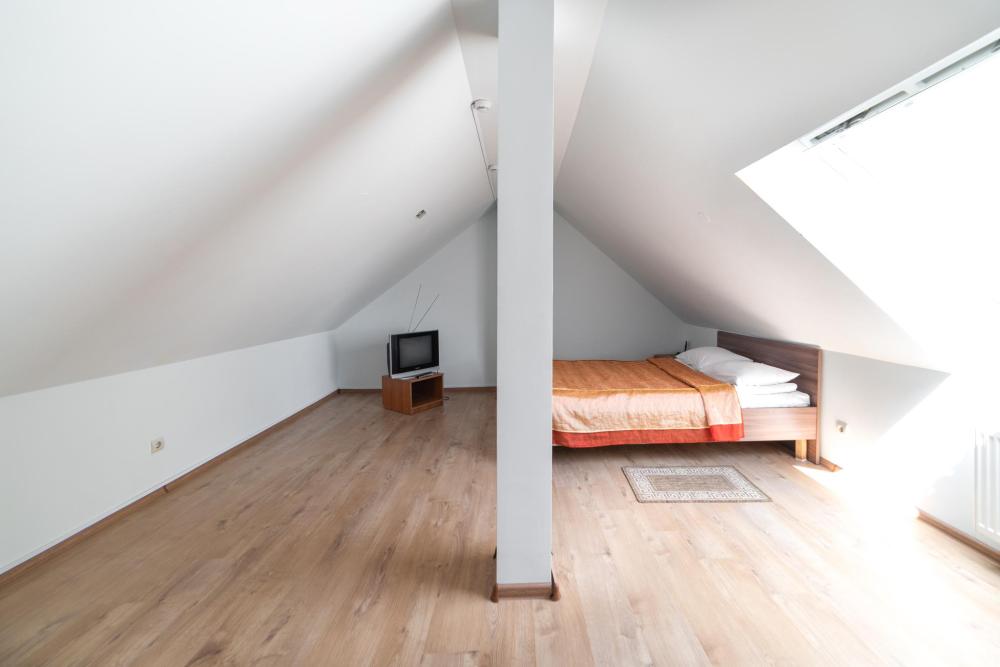 Номер-студио оборудован собственной ванной комнатой, кабельным TV и бесплатным Wi-fi. В номере располагается двуспальная кровать, письменный стол, мини-холодильник, чайник. По запросу в номер может быть предоставлена детская кроватка (бесплатно)