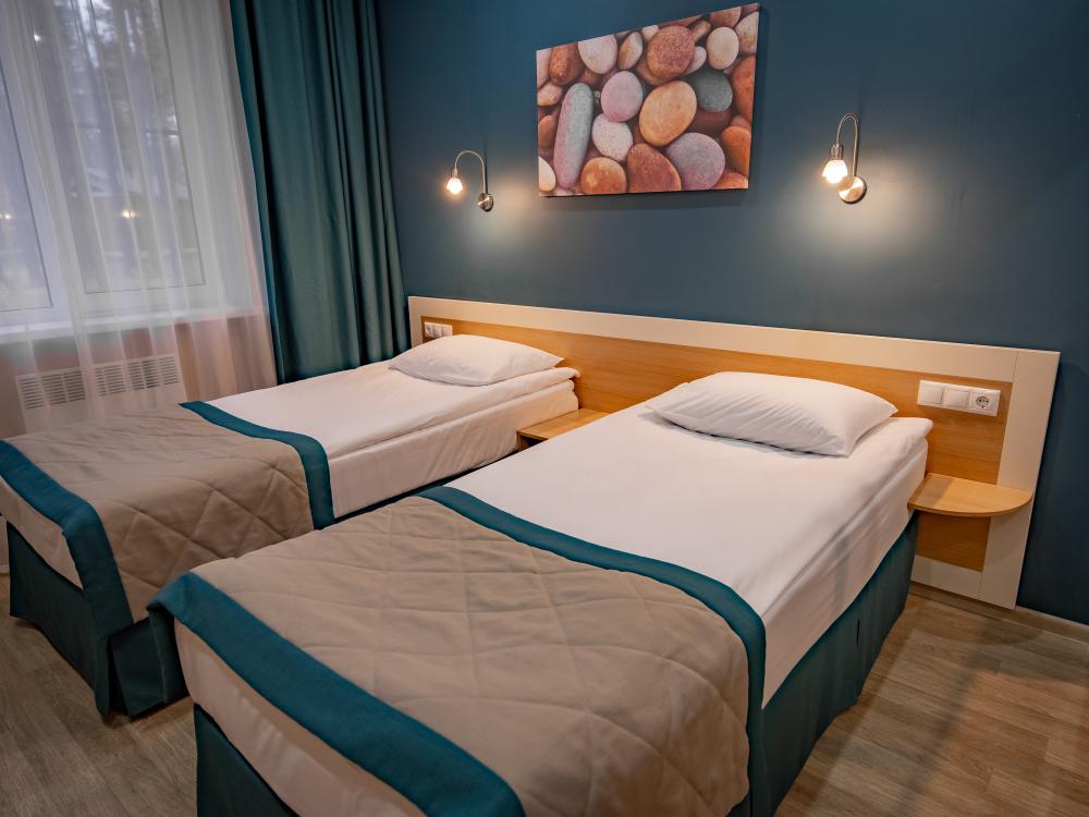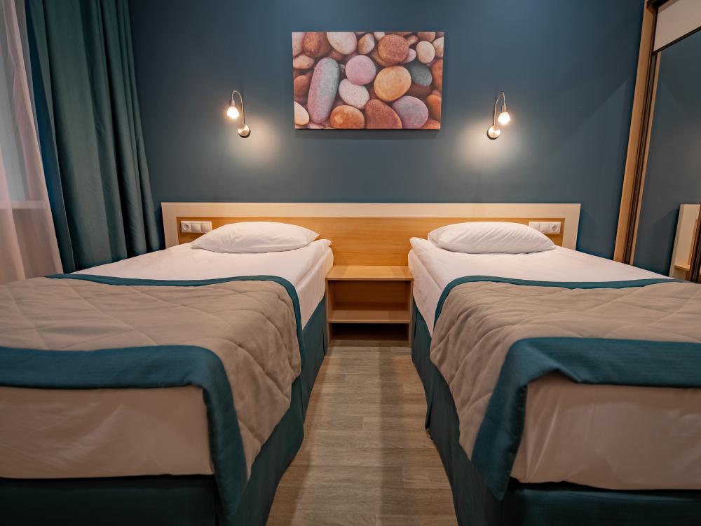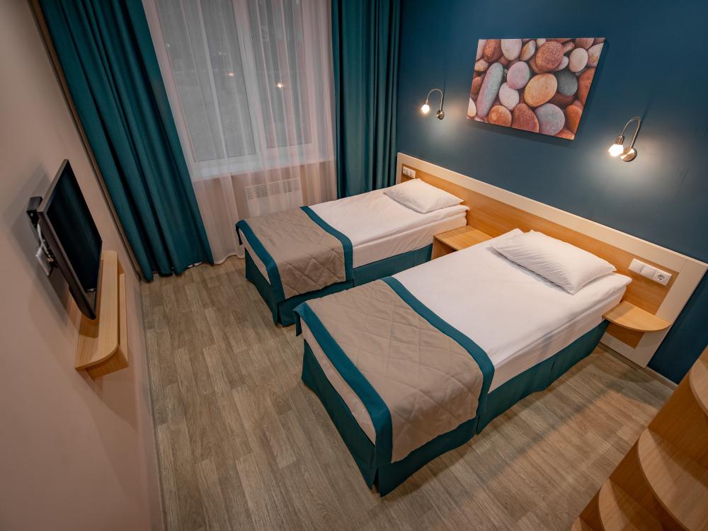 Двухместный номер с двумя отдельными кроватями, душем, туалетом, телевизором.