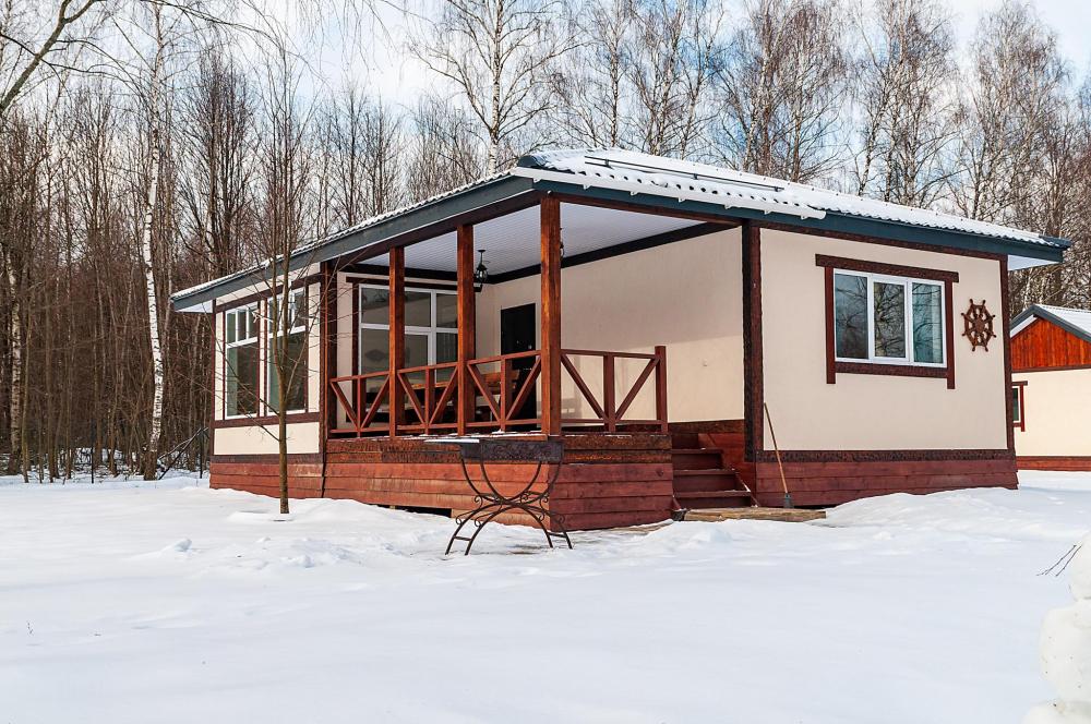 Домик с баней площадью 65 м² идеально подходят для отдыха 3 человек. Имеет отдельную спальню с двухспальной и односпальной кроватью, кухню и большую гостиную. На полуторном этаже возможно размещение дополнительно 2 гостей. • Полностью оборудованная кухня с 2-х конфорочной электрической плитой, холодильником/морозильником, микроволновой печью, чайником, со всей необходимой для приготовления посудой • Русская баня на дровах • Ванная комната с душем и туалетом • Кровати заправляются перед прибытием гостей • Предоставляются лицевые и банные полотенца • Wi-Fi • Огромная веранда с мангалом с видом в лес • Дом для некурящих, можно курить в беседке и на территории • Места для парковки перед домом