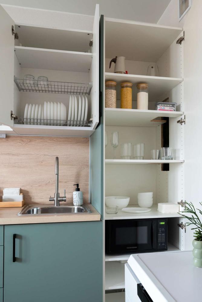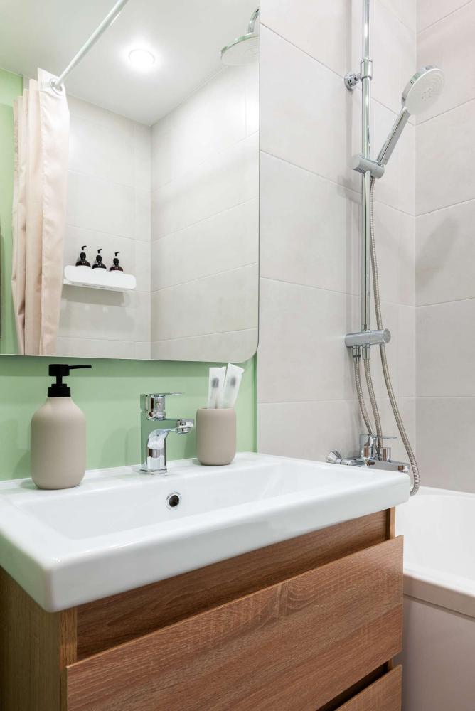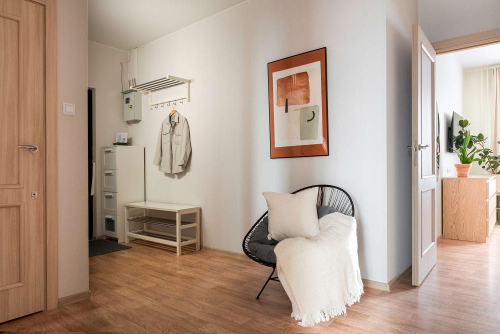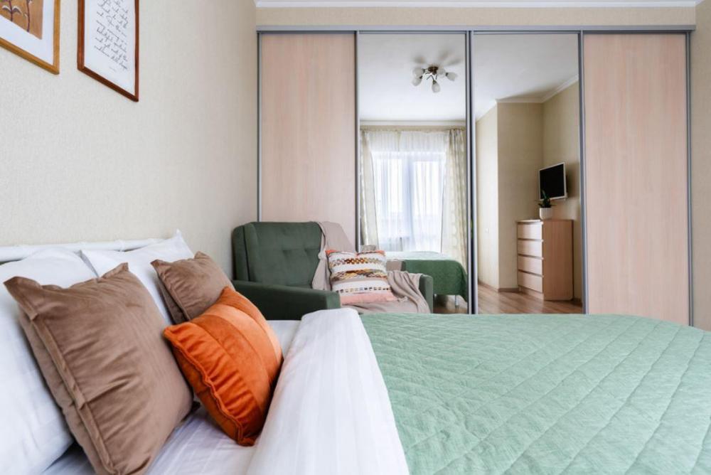 В квартире все самое необходимое для комфортного проживания: чистое постельное белье и пушистые полотенца; затемняющие шторы, ТВ; бесплатный высокоскоростной интернет; полностью оборудованная кухня: холодильник, плита, микроволновка, электрический чайник и вся необходимая посуда; наличие шампуня, кондиционера и геля для душа; наличие бытовых моющих средств и средств для стирки; наличие утюга, сушилки и гладильной доски для белья, фена, стиральной машинки