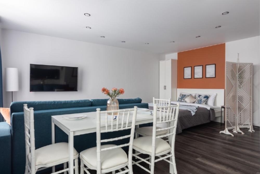 В квартире все самое необходимое для комфортного проживания: чистое постельное белье и пушистые полотенца; затемняющие шторы, ТВ; бесплатный высокоскоростной интернет; полностью оборудованная кухня: холодильник, плита с 2 конфорками, микроволновка, электрический чайник и вся необходимая посуда; наличие шампуня, кондиционера и геля для душа; наличие бытовых моющих средств и средств для стирки; наличие утюга, сушилки и гладильной доски для белья, фена, стиральной машинки