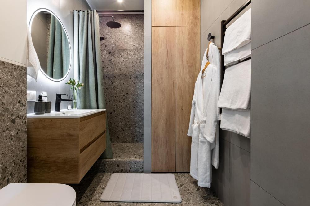 В апартаментах имеется все необходимое для комфортного проживания : удобные спальные места, оборудованная техникой и посудой кухня, ванная комната, стиральная машина, холодильник, телевизор, кондиционер, постельное белье, полотенца. Большие окна и панорамная лоджия наполнят пространство светом.