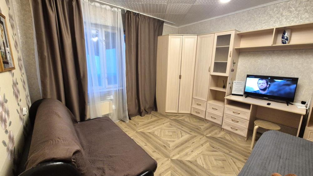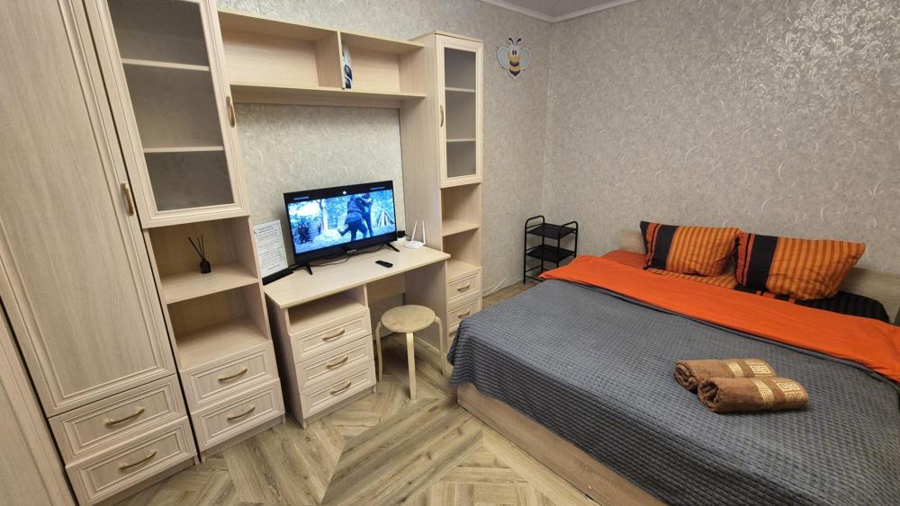 Однокомнатные апартаменты для 3 гостей. Спальные места: диван и двуспальная кровать. В квартире есть все необходимое для комфортного проживания: постельные принадлежности, полотенца, тапочки, туалетные принадлежности. На кухне в наличии микроволновая печь, электрическая плита, духовой шкаф, необходимая посуда, вместительный холодильник. Ванная комната со стиральной машиной и сушилкой для белья. Работает бесплатный wi-fi и телевизор со смарт-ТВ и Яндекс Алисой