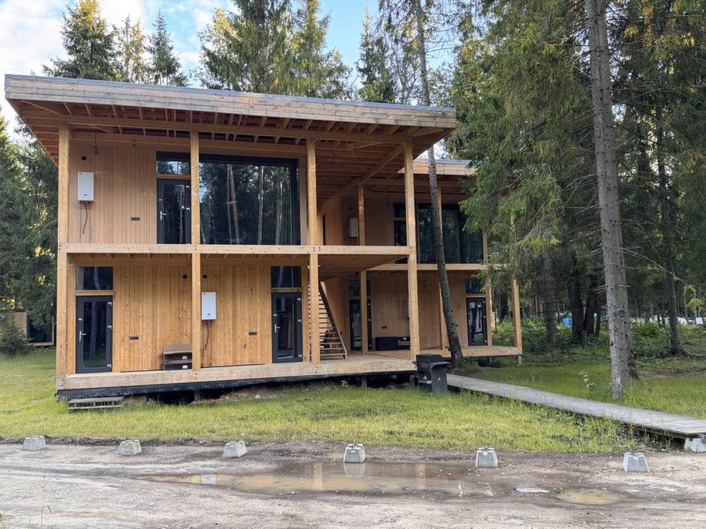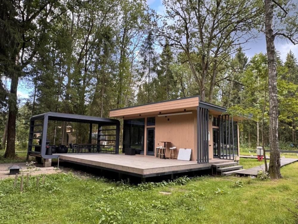 Экомодуль 500. Уютный современный домик из дерева для тех, кто устал от городской суеты. Изюминка – панорамное окно с видом на лес. Подойдёт как для пар, так и для уединённого отдыха.