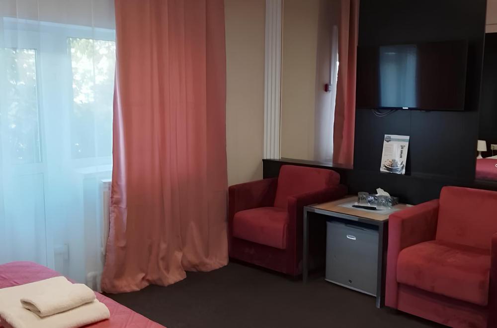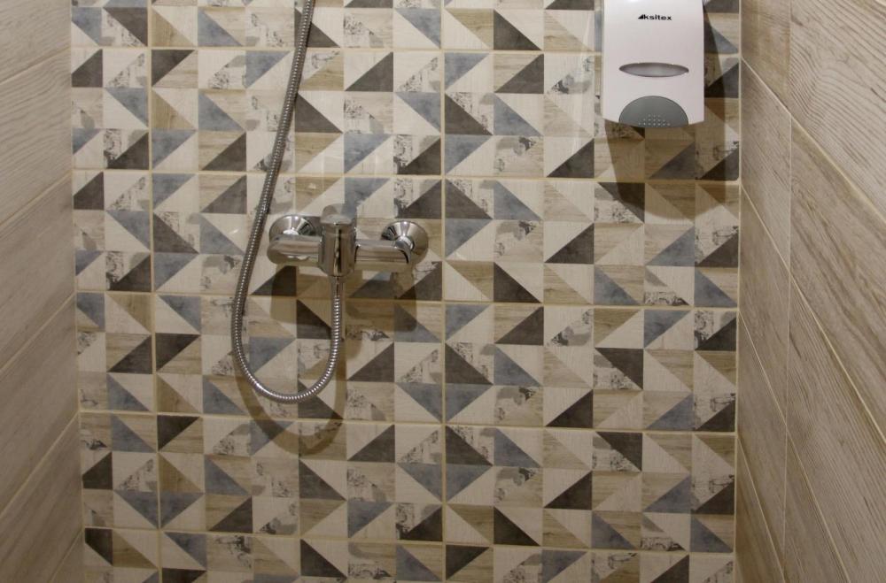 Номер с двуспальной кроватью. Ванная комната с душевой кабиной.