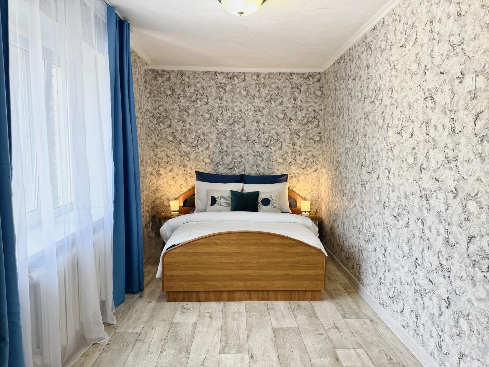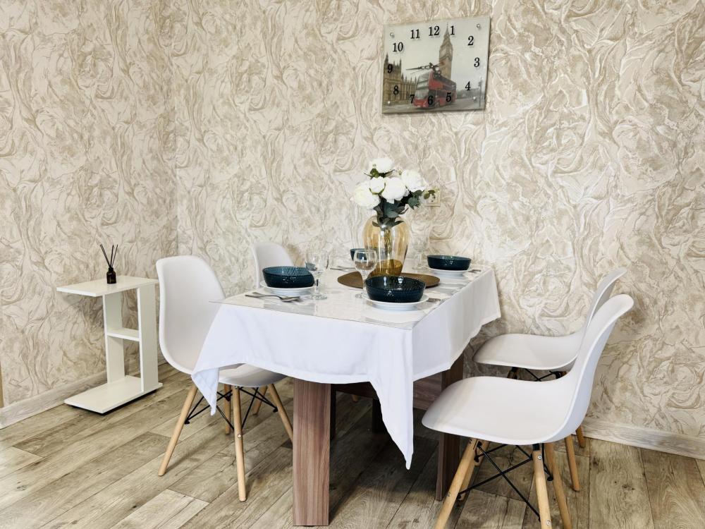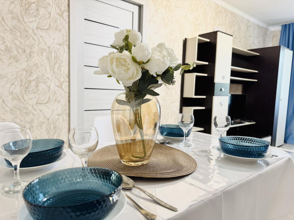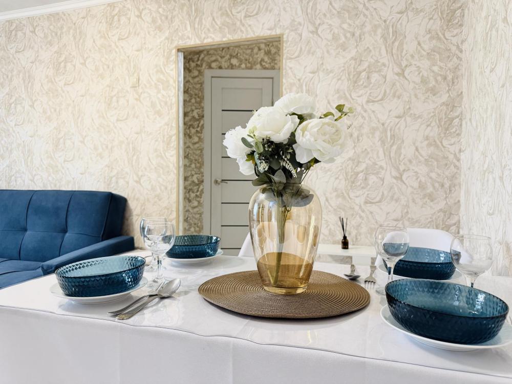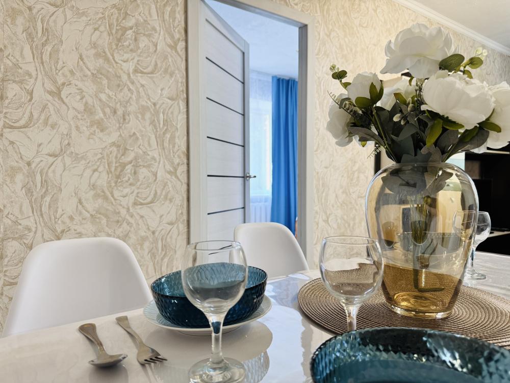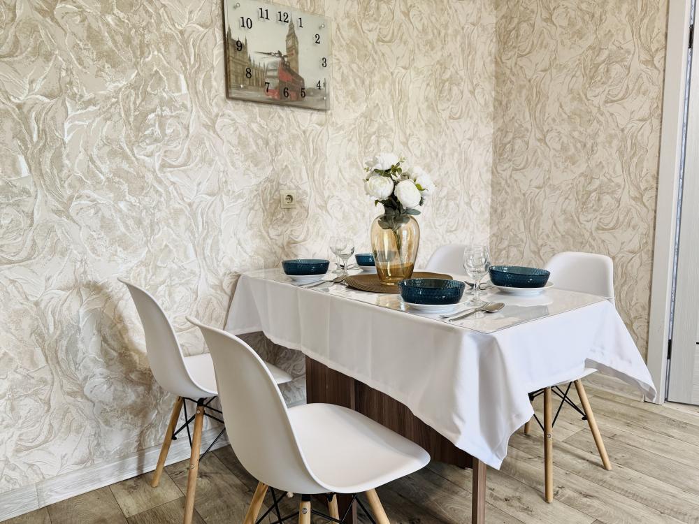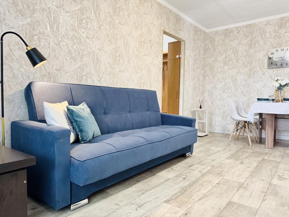 Эта просторная светлая квартира предлагает все необходимое для комфортного отдыха: удобная кровать с качественным матрасом, уютный диван для дополнительных спальных мест и большая кухня с выделенной столовой зоной. В квартире имеется современная бытовая техника, включая два больших телевизора Smart TV с доступом к RuTube, а также высокоскоростной WI-FI. Дополнительные удобства включают платяной шкаф, плечики для одежды, фен, утюг и гладильную доску. Обеспечивают качественное постельное белье, махровые полотенца, тапочки, посуду и столовые приборы, предусмотрев такие мелочи, как штопор, салфетки и индивидуальные косметические средства для вашего комфорта. Горячая вода предоставляется постоянно благодаря установленному газовому котлу.