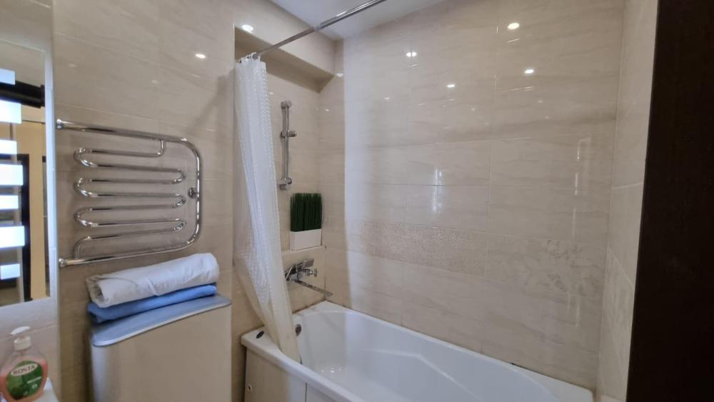 Квартира оснащена всем необходимым для комфортного отдыха. В распоряжении гостей полностью укомплектованная кухня, холодильник, микроволновая печь, фен, телевизор, интернет (Wi-Fi) и кондиционер. В доме предусмотрен лифт, что добавляет удобства при перемещении.
