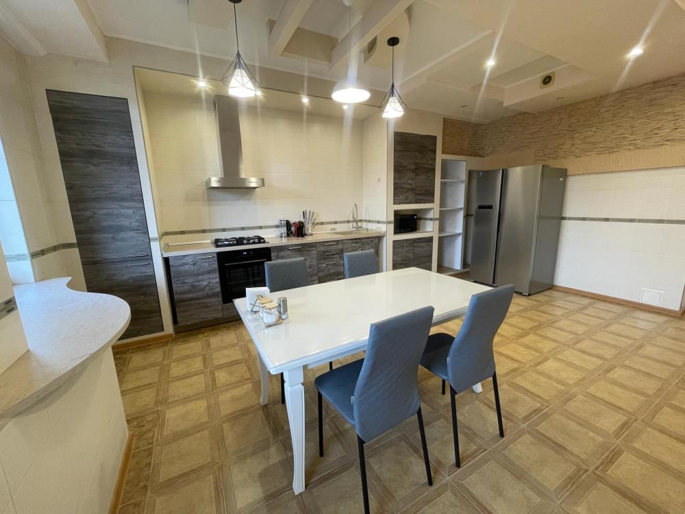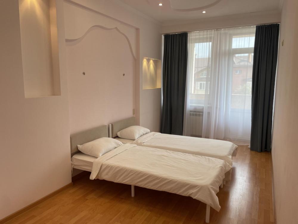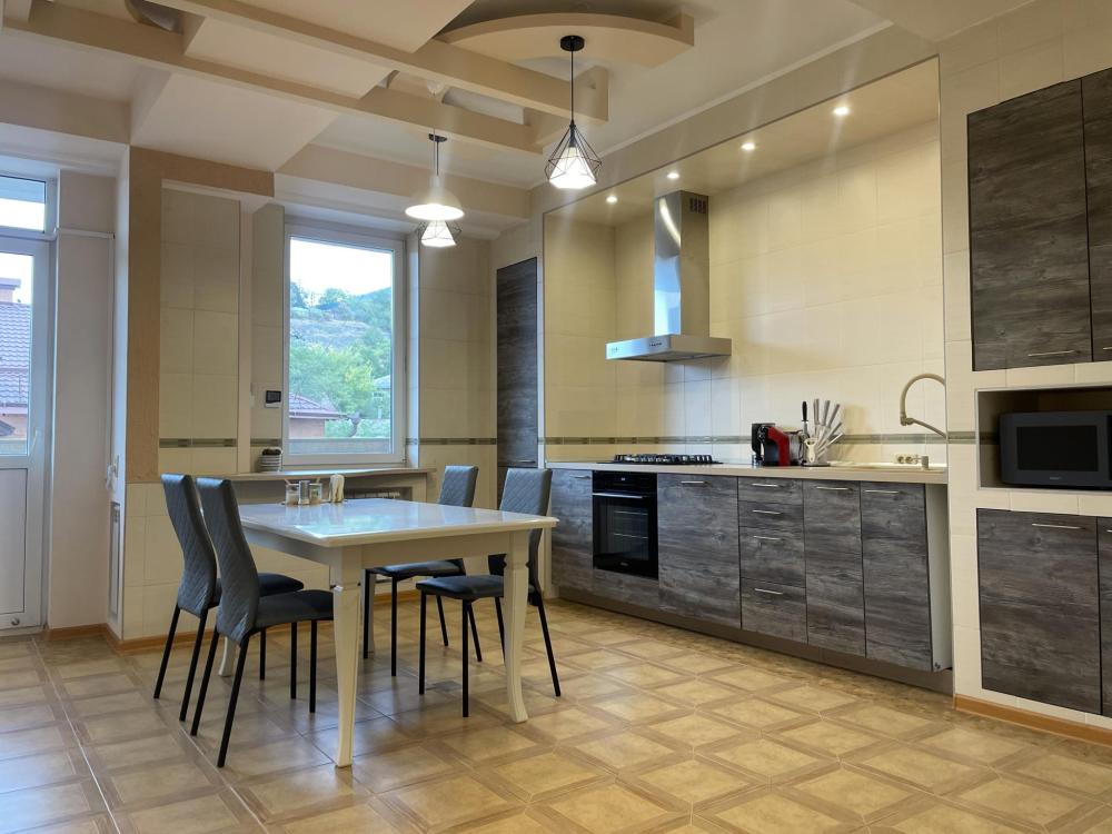 Апартаменты для большой семьи в курортной зоне Пятигорска с балконом и видом на гору Машук приветствуют Вас! 4-комнатные апартаменты комфорт класса. До парка Цветник 5 минут пешком. Вместимость до 8 человек. Качественное постельное бельё и полотенца. Бесплатный чай, кофе. Бесконтактное заселение в любое время! Внимание, базово (для 2-4 человек) квартира сдаётся как двухкомнатная с основной спальней и диван-кроватью в гостиной. Вторая и третья спальня открываются при бронировании на 5-8 человек, либо по вашему желанию за дополнительную плату. ? К вашим услугам: - просторная квартира 150 м², со всем необходимым для комфортного проживания большой семьи или дружной компании: Базовая площадь (при бронировании на 2-4 чел.) ① гостиная с большим телевизором 55" и широким диваном, ② кухня, ③ основная спальня с двухспальной кроватью 160×200 и ортопедическим матрасом, ④ первый санузел (совмещённый с ванной), ⑤ первый балкон с видом на гору Машук и Китайскую беседку, ⑥ коридор с гардеробной системой, прихожая. Дополнительная площадь (при бронировании на 5-8 человек, либо по вашему желанию за доп. плату) ⑦ вторая спальня с двухспальной (либо 2 односпальными) кроватью, ⑧ третья спальня с односпальной кроватью, ⑨ второй санузел, ⑩ второй балкон с видом во двор. В квартире есть мебель для хранения вещей, подушки, одеяла; посуда, средства гигиены, одноразовые тапочки, халаты, полотенца и т.д.; - кондиционер, бытовая техника (в т.ч. утюг, фен, робот-пылесос), Wi-Fi, 200 каналов ТВ + кинопрокат. - бесплатный чай и кофе, каши, и т.д. - чистый подъезд (дом 2005 года), двор с детской площадкой. Благополучный район и соседи. На территории круглосуточное видеонаблюдение. - бесплатная закрытая парковка во дворе. - детская площадка около дома. - в 50 метрах выход к реке на небольшую набережную. ? Нам важно, чтобы Ваш отдых прошёл идеально. Перед каждым гостем мы делаем тщательную уборку с применением безопасных дезинфицирующих средств. Вас будут ждать свежее, ароматное, прошедшее термообработку постельное белье, полотенца и халаты, широкая кровать, диван и кресла. Мы всегда на связи и готовы помочь с любым вопросом. ? Местоположение: ➣ Курортная зона города Пятигорск! ➣ 500 м до парка Цветник, где находятся: Лермонтовская галерея, Центральная питьевая галерея, Лермонтовские ванны, Пушкинские ванны, театр оперетты и другие достопримечательности и курортные лечебные организации. Выход к Нагорному парку, горе Машук; ➣ 500 м до санатория Зори Ставрополья, Горячий ключ, Нижней радоновой лечебницы; ➣ 1000 м до Диких (Бесстыжих) нарзанных ванн; ➣ 1000 м до автовокзала; ➣ Медицинский центр Дикуля в этом же здании; ➣ Пятигорский институт СКФУ юридический факультет в соседнем здании.