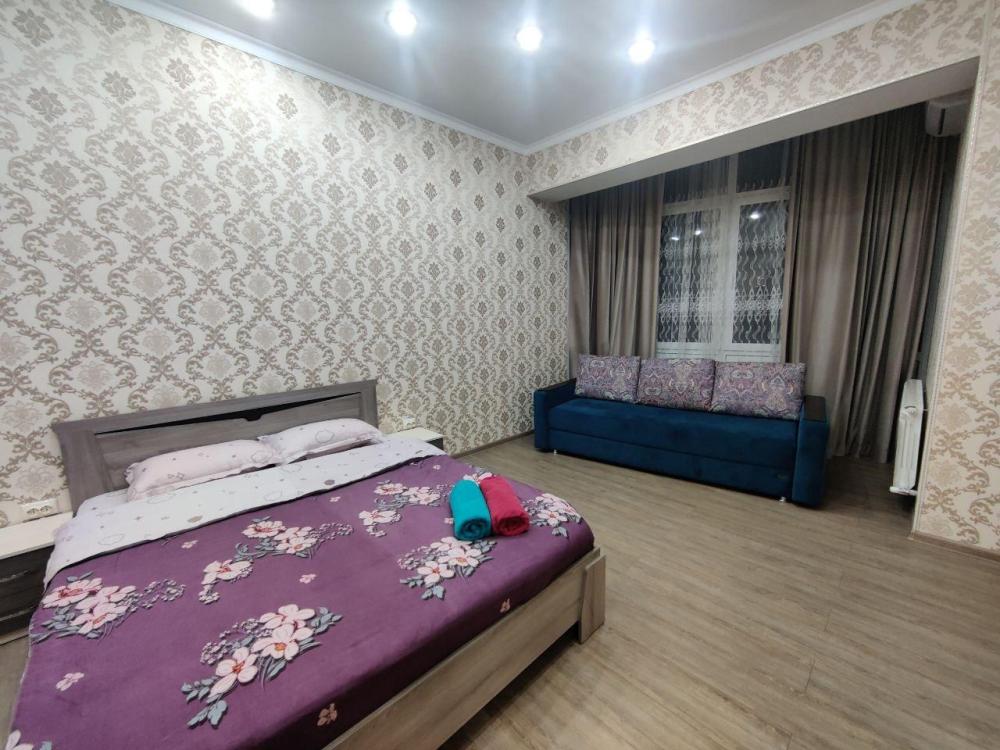 Роскошная квартира с дизайнерским интерьером рядом с Автовокзалом в центре города. В распоряжении гостей удобная спальная комната, просторная кухня. Спальня оснащена двуспальной кроватью King-Size, прикроватными тумбами, вместительным шкафом и комодом. Напротив кровати FullHD телевизор с кабельными каналами. Есть вся необходимая посуда и бытовая техника: телевизор FullHD, микроволновая печь, электрический чайник, газовая плита, духовой шкаф, фен, утюг. ⠀В квартире возможно размещение до 2 человек. Бесплатная охраняемая парковка ️возможна рядом с домом. Рядом находятся продуктовые магазины и супермаркет Магнит. Напротив расположен семейный ресторан Оливия с огромной детской зоной для любых возрастов.
