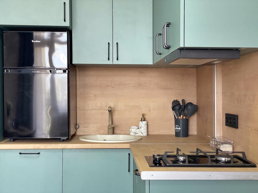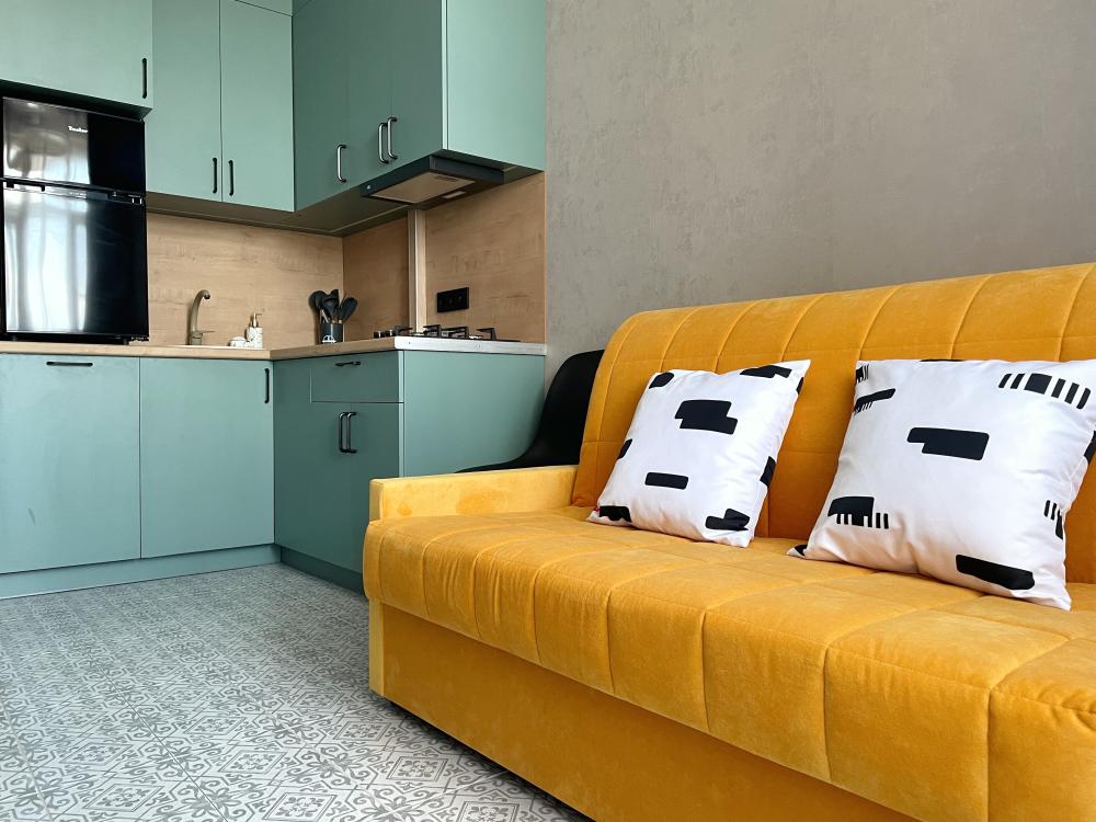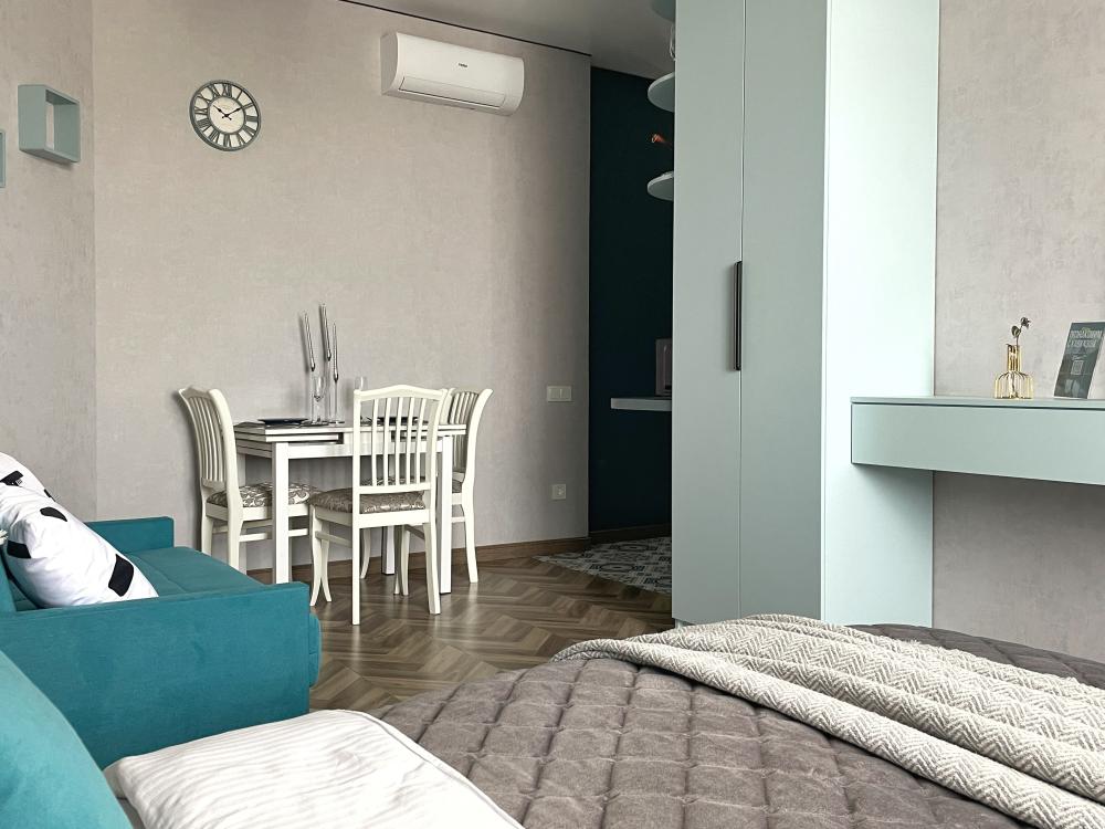 Студия, наполненная любовью и заботой, предлагает все необходимое для комфортного отдыха. Здесь находятся ортопедический матрас, диван шириной 140 см для удобного сна детей, холодильник, телевизор, кондиционер, посудомоечная и стиральная машины, а также микроволновая и электрическая печки. В наличии фен, утюг, сушка и гладильная доска, тапочки, халаты и полотенца, а также многое другое для удобства и уюта.
