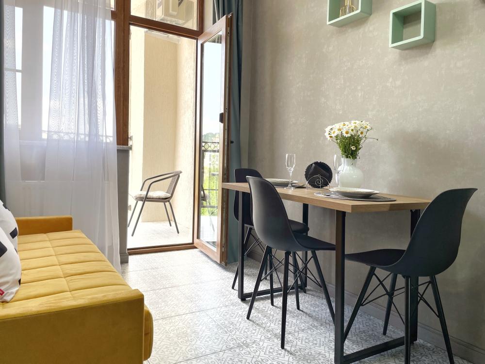 В самом центре Пятигорска, на 7 этаже с панорамным видом на Машук, расположилась уютная и стильная студия с дизайнерским ремонтом. Квартира, наполненная любовью и заботой, оснащена всем необходимым для комфортного отдыха, включая ортопедический матрас, диван шириной 140 см для удобного сна детей, холодильник, телевизор, кондиционер, посудомоечную и стиральную машины, микроволновую и электрическую печки. Также доступны фен, утюг, сушка и гладильная доска, тапочки, халаты и полотенца, а также множество других удобств.