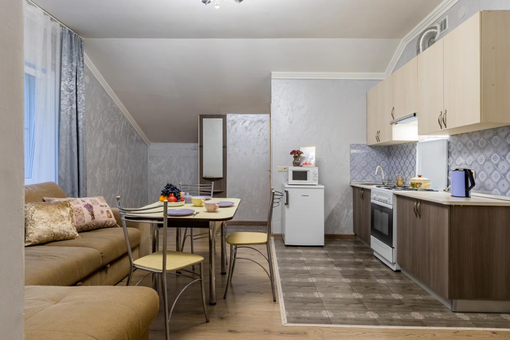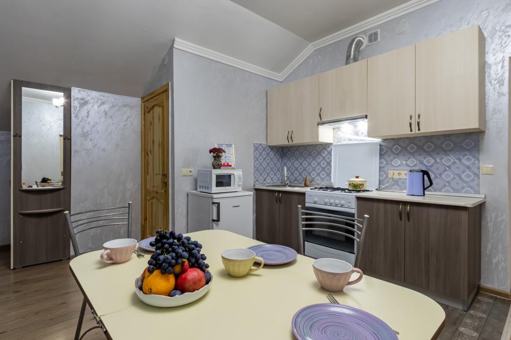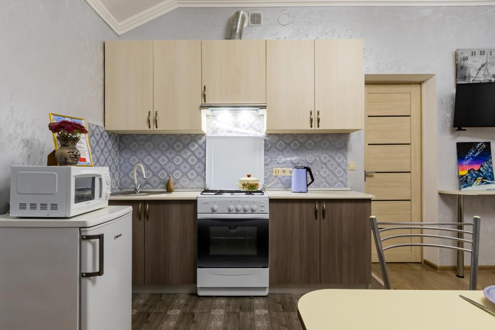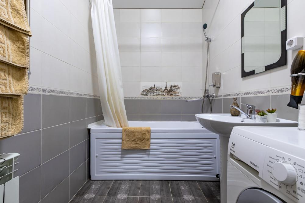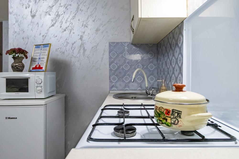 В квартире имеется спальня с комфортной кроватью и ортопедическим матрасом. Кухня полностью оборудована духовым шкафом, плитой, вытяжкой, микроволновой печью и чайником. Кондиционер, утюг, фен и гладильная доска также в наличии. Приоритетом является чистота: уборка занимает два часа, и всегда предоставляется чистое постельное белье и полотенца.