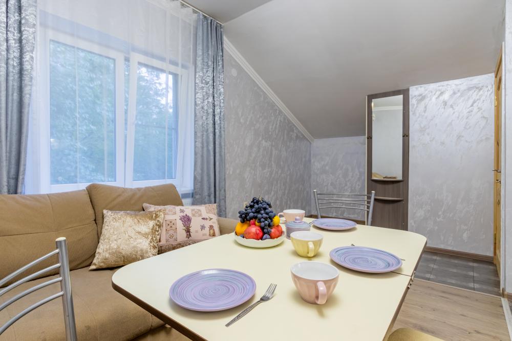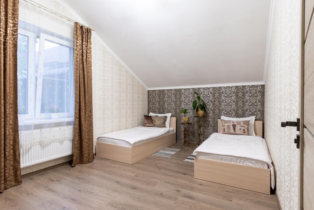Уютная квартира с двумя спальнями на втором этаже двухэтажного дома в районе Квартал. Каждый этаж самостоятельный с отдельным входом, как в обычных квартирных домах. Две отдельные спальни и кухня-гостиная позволяют комфортно разместить до шести человек. Кухня полностью оборудована посудой, холодильником, электрическим чайником и микроволновой печью. Квартира обставлена новой мебелью, всегда застелено чистое постельное белье и предоставлены мягкие полотенца. В наличии фен, утюг, гладильная доска и сушка для белья. Для комфорта в жаркую погоду работает кондиционер, есть бесплатный интернет Wi-Fi.