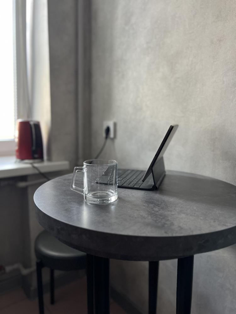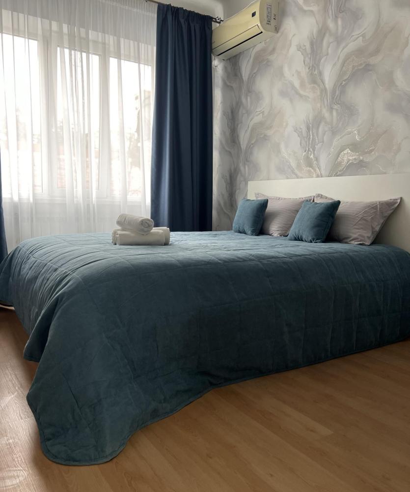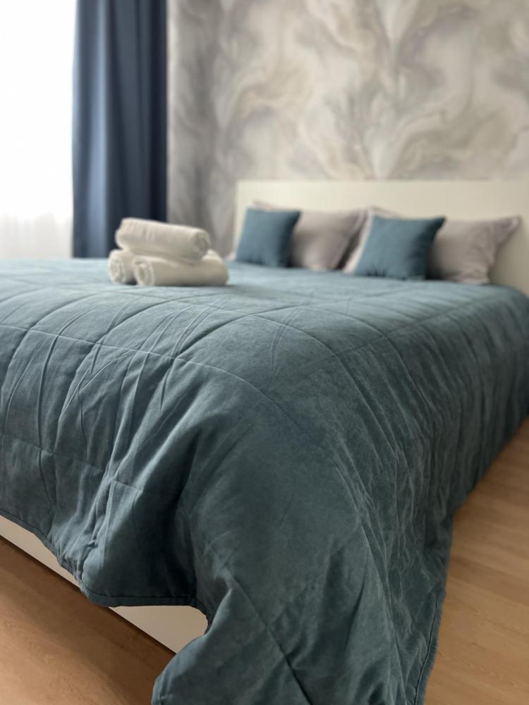 Квартирка компактная и в ней есть все для комфорта. Во первых это удобная кровать и матрац, шторы блэк аут, подушки и одеяло с эконаполнителем последнего поколения. Постельное белье в стильных серых тонах из премиум сатина. В кухне есть самое важное и не только. Современная посуда, столовые приборы, электро чайник, микроволновка, плита. Ванная комната хоть и не большого размера но удобная и теплая.