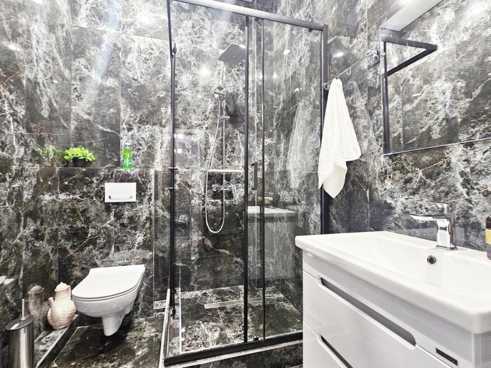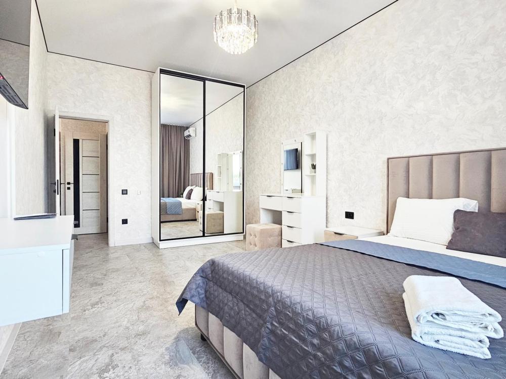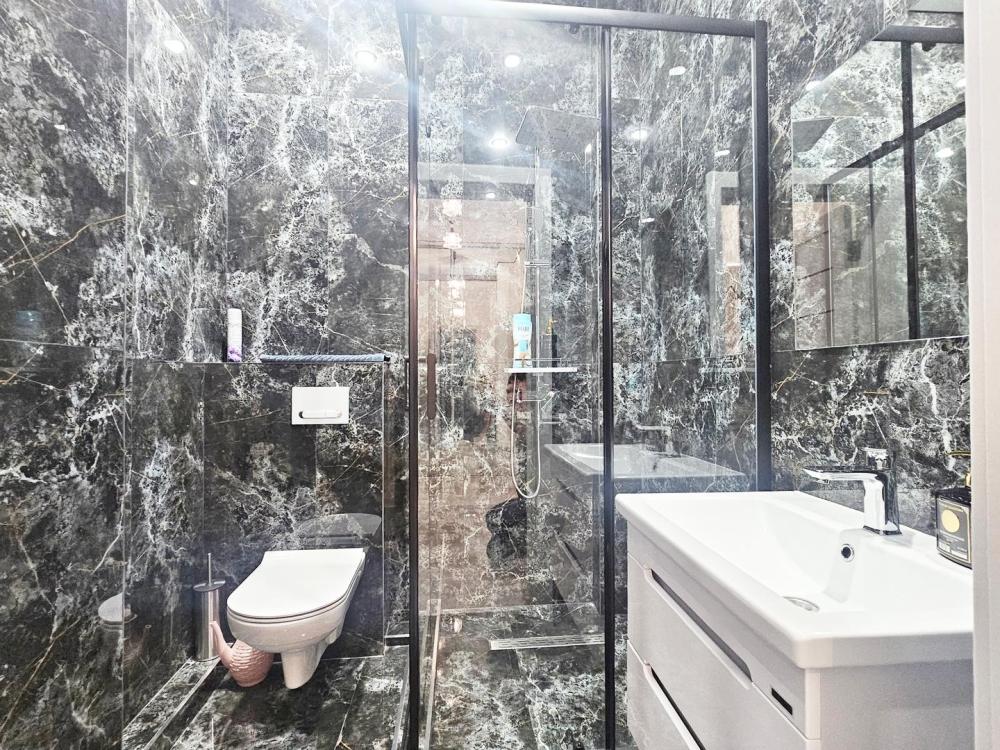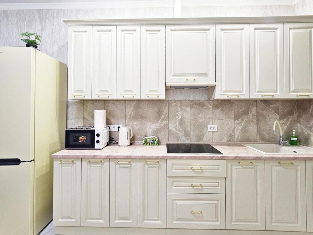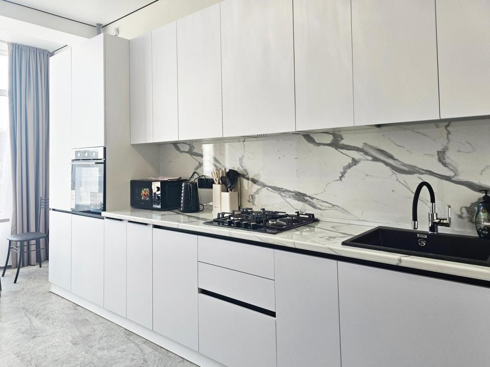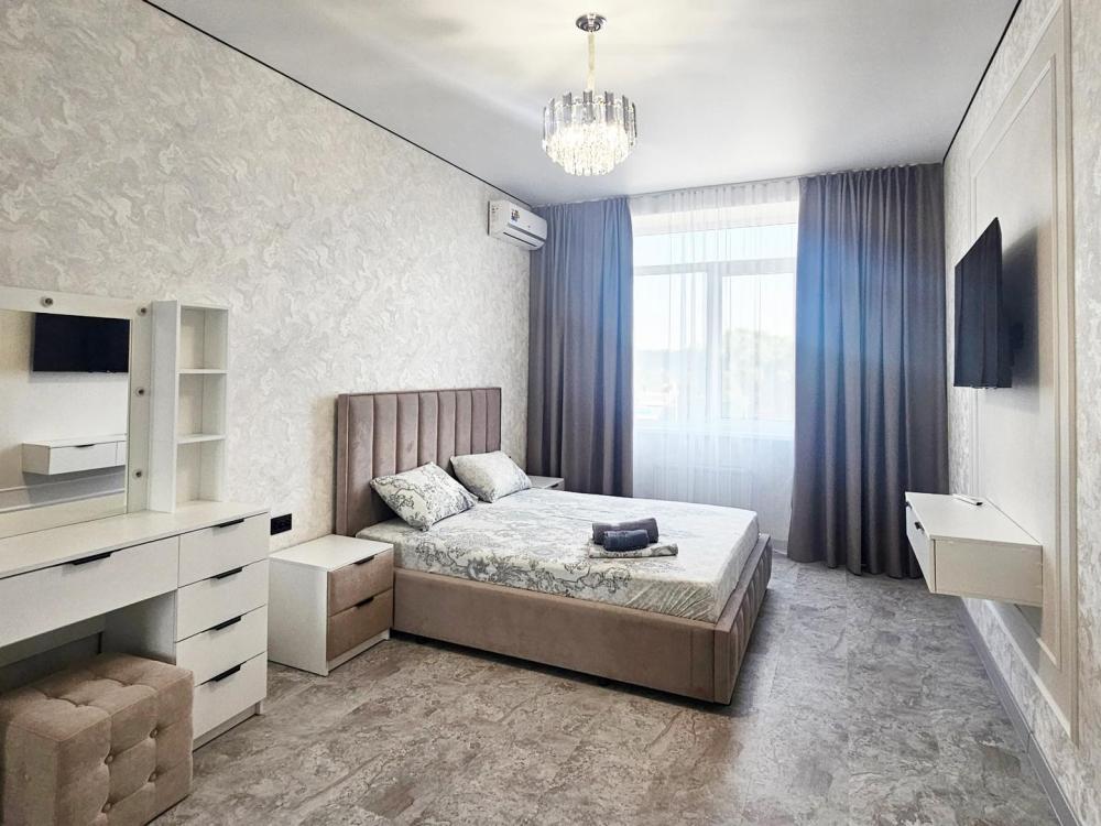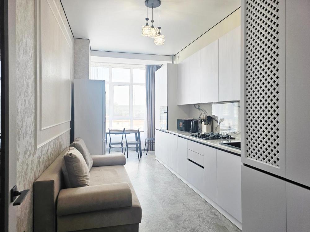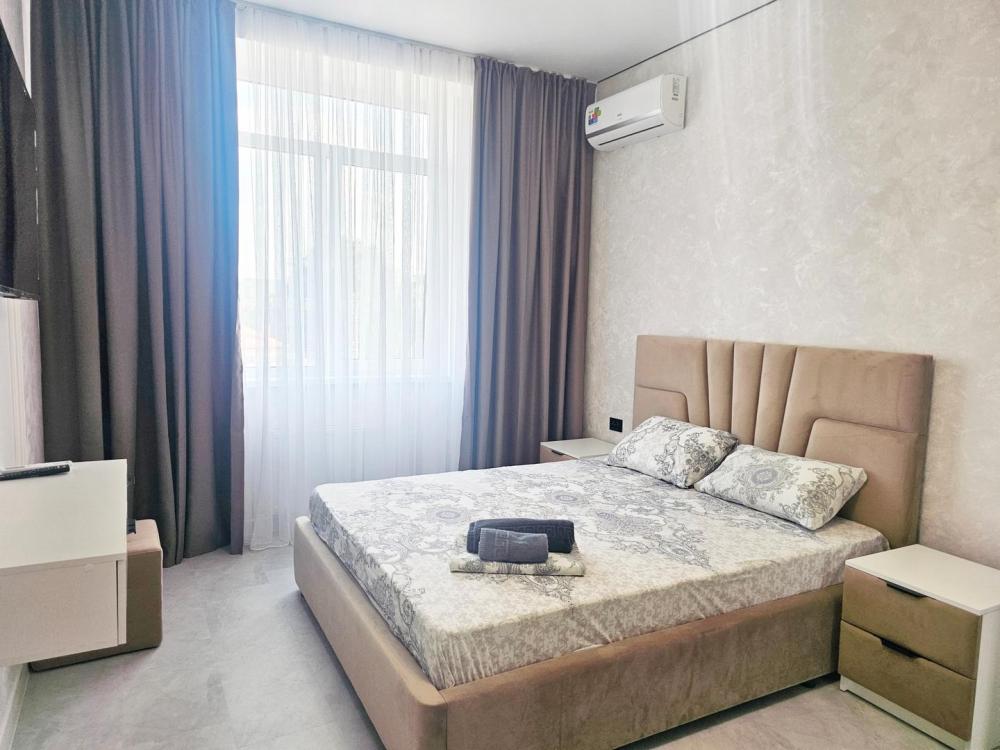 Сдаётся уютная однокомнатная квартира на третьем этаже девятиэтажного дома с лифтом. В квартире предусмотрено четыре спальных места, что делает её идеальной для семейного отдыха. Курение запрещено, но можно с детьми. Животные не допускаются. Интерьер выполнен в современном стиле с качественными материалами. Просторная спальня оборудована удобной двуспальной кроватью, телевизором и кондиционером. Из окон открывается вид на улицу, создавая ощущение простора и света. Кухня оснащена всем необходимым: современная встроенная мебель, холодильник, плита, микроволновая печь и чайник. Для вашего удобства также предусмотрен телевизор с кабельным/цифровым ТВ. Ванная комната выполнена в стильном мраморном дизайне с душевой кабиной. В наличии все необходимые средства гигиены. Парковка бесплатная, доступна бесконтактное заселение.
