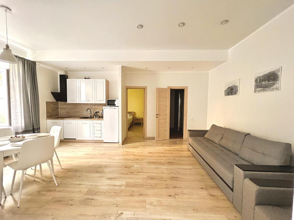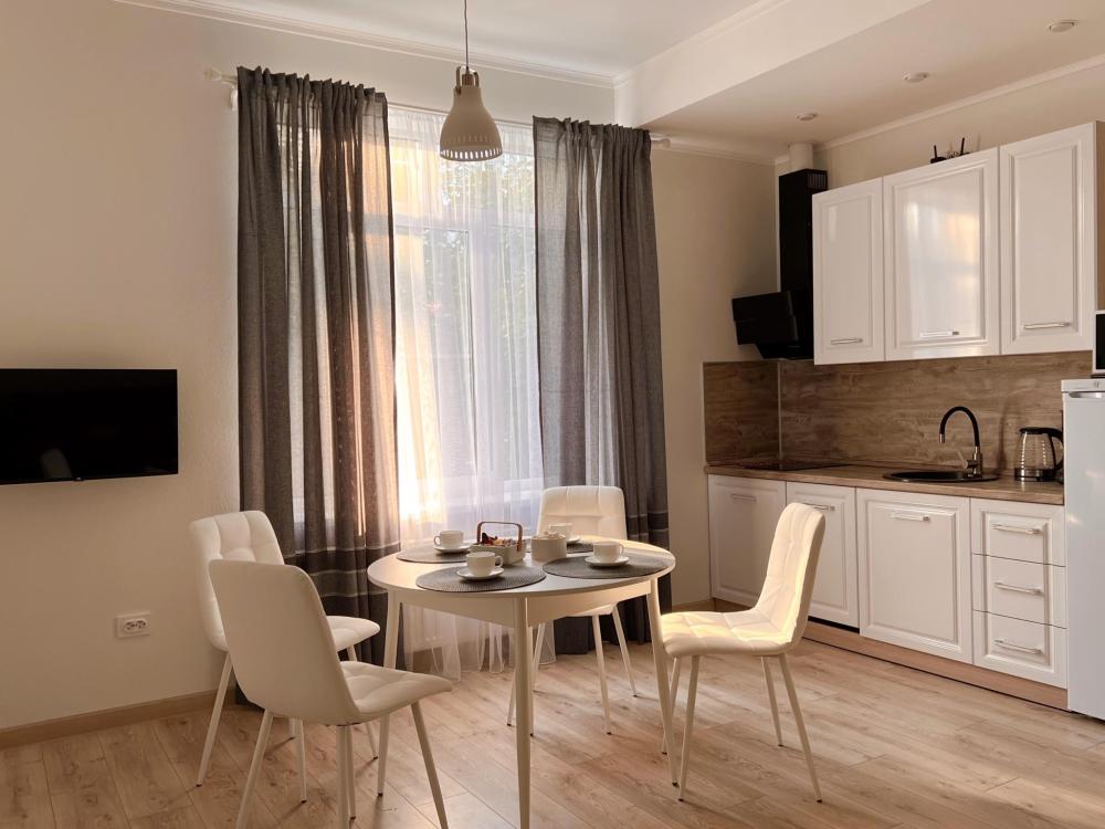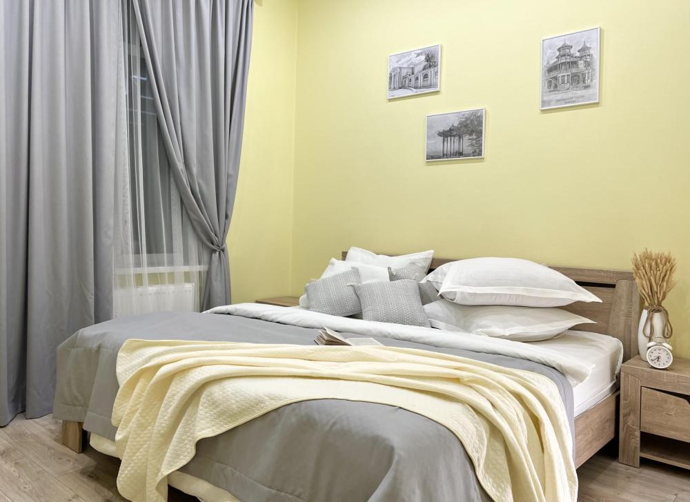 В квартире имеется комфортная кровать (180х200) с ортопедическим матрасом и двумя одеялами, диван-кровать (140х200), кресло-кровать (спальное место размером 70х200) и раскладушка, оборудованная кухня и обеденная зона. Удобное размещение для 5-ти человек. В апартаментах : белоснежное постельное бельё и полотенца для всех гостей, махровые халаты и одноразовые тапочки, жидкое мыло, гель для душа, шампунь, стиральная машина и средства для стирки, посудомоечная машина и средства для мытья посуды, два телевизора, утюг и гладильная доска, сплит-систему для поддержания комфортной температуры, тёплый пол в ванной комнате, пылесос, моющие средства, губки, гигиенические принадлежности, фен, электрочайник и чай, соль, сахар, подсолнечное масло, специи, микроволновая печь, вместительный холодильник, кофеварка и натуральный молотый кофе, сервировочная посуда и посуда для приготовления, бокалы и штопор, wi-fi