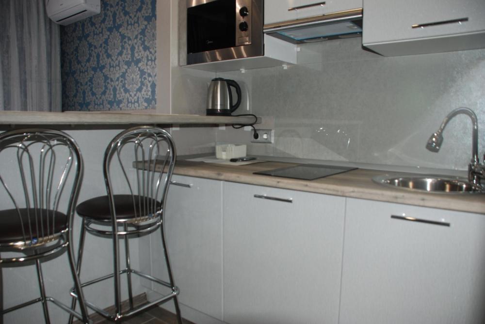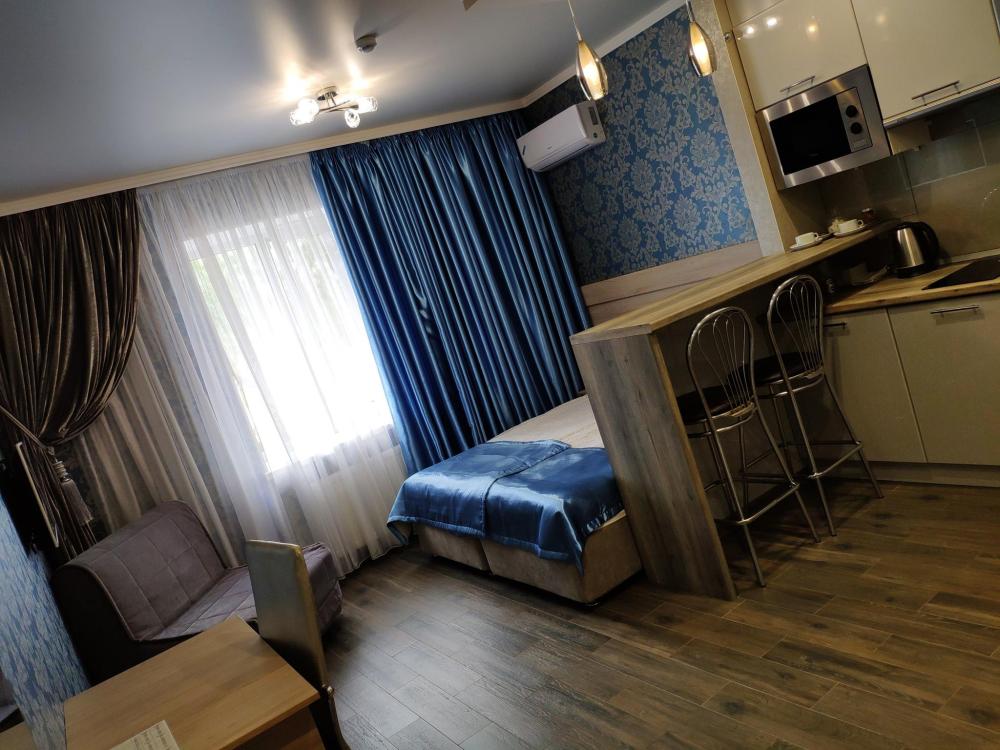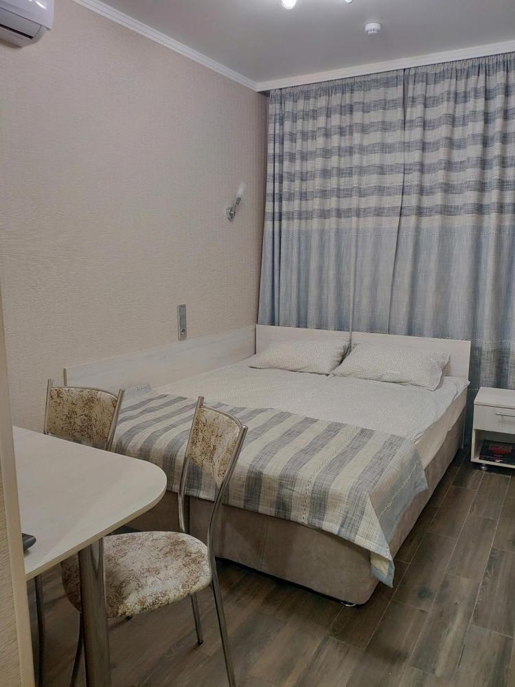 Уютная студия для комфортного проживания двоих гостей. В студии есть все для комфортного отдыха: TV, Wi-Fi, стиральная машина, полноценная кухня (плита, холодильник, микроволновая печь, чайный набор, турка), постельное белье, полотенца, душ, фен, гладильная доска, утюг, средства гигиены, сплит-система. Удобная двуспальная кровать (Spring Box с ортопедическим матрасом и топпером. При необходимости, Спальная система Spring Box позволяет двухспальную кровать раздвинуть на две отдельные односпальные кровати).