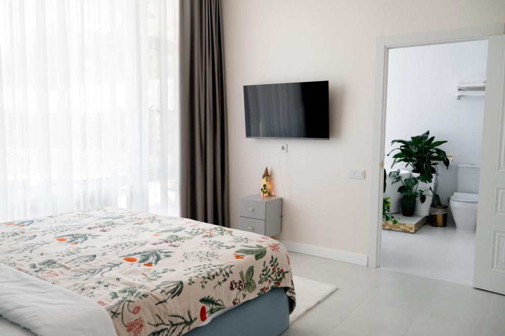 Премиальная вилла "Джуца ЛЮКС" идеальное место для тех, кто ценит комфорт и эксклюзивный отдых. Вилла, объединяющая современный дизайн и природную красоту. Просторная спальня, гостиная с уютным диваном и полностью оборудованной кухней — идеальное место для отдыха, встреч с близкими или романтических вечеров. В кухне есть все необходимое для приготовления любимых блюд, чтобы сделать ваш отдых максимально комфортным. Главная изюминка виллы — изолированная терраса с собственным горячим бассейном, ваш личный уголок уединения и комфорта. По запросу предоставляем кровать-манеж или еврораскладушку.