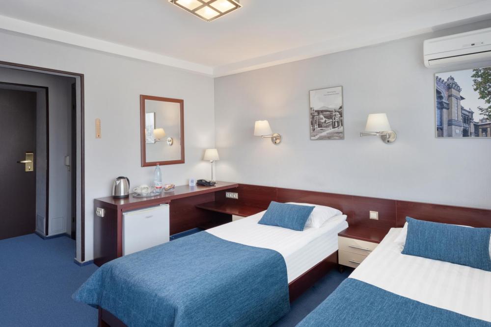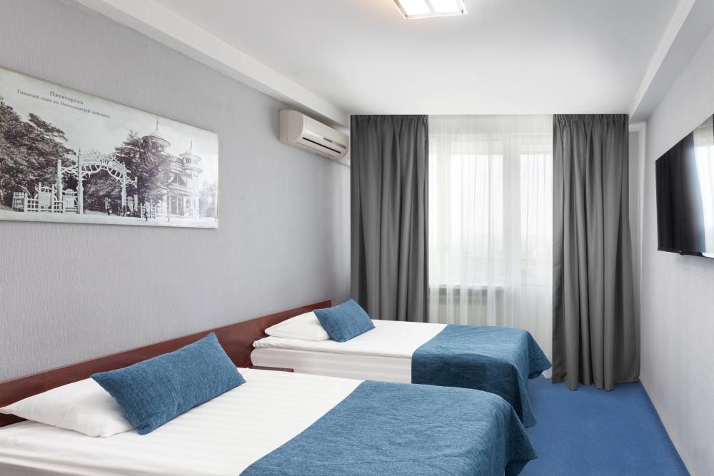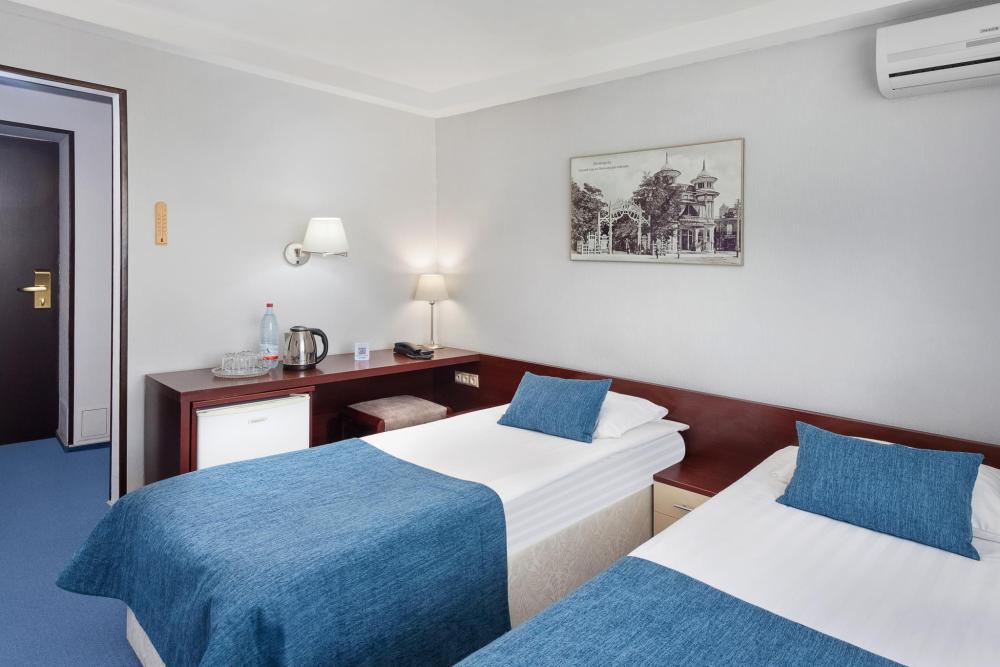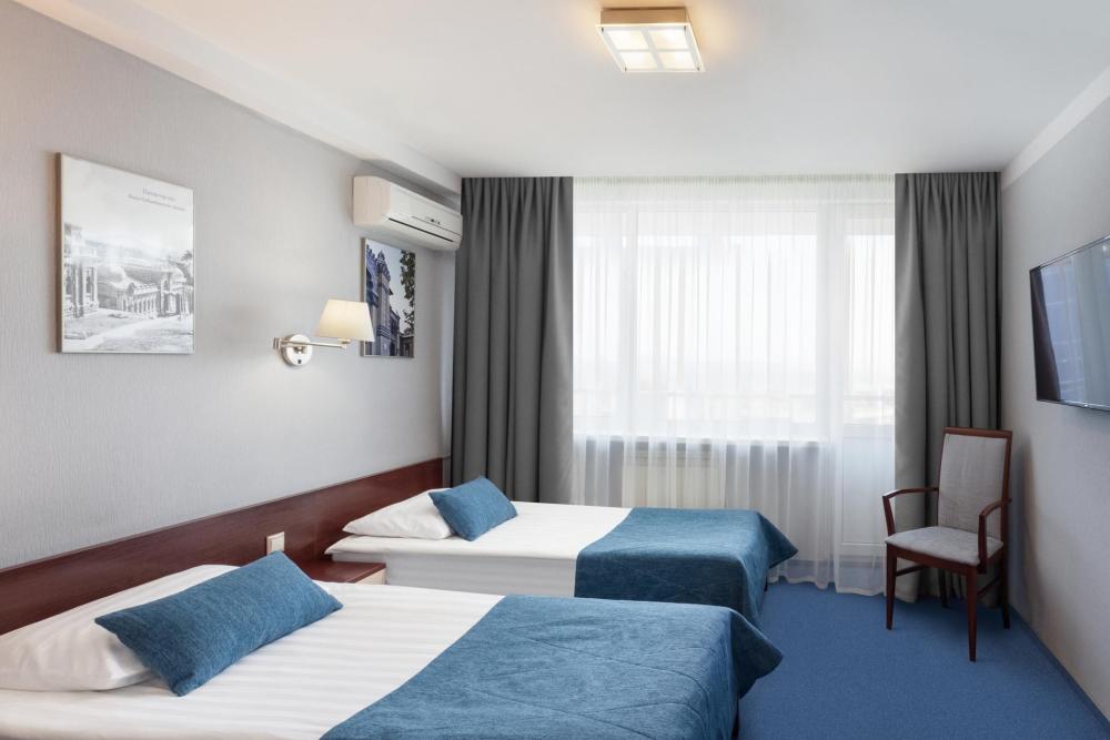 Двухместный однокомнатный номер с балконом, площадью 18 кв. м. В номере: кондиционер, две кровати, письменный стол, стул, банкетка, ЖК-телевизор, телефон, мини-бар, фен, гидромассажная душевая кабина, набор туалетных принадлежностей.