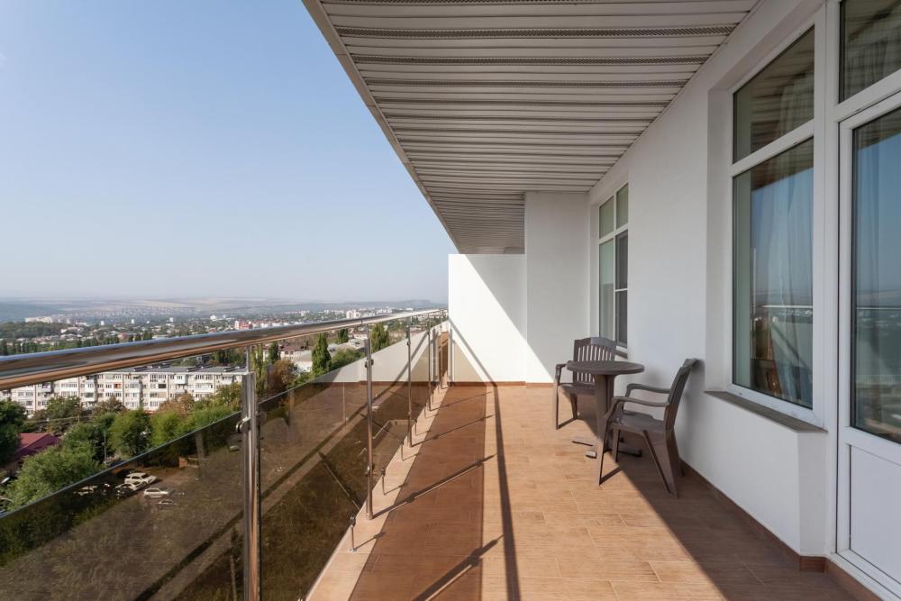 Однокомнатный номер с балконом. В номере: Wi-Fi интернет, Кондиционер, ЖК-телевизор, Телефон, Удобная кровать, Письменный стол, Банкетка, Ванная комната оборудована гидромассажной душевой кабиной, Тапочки, Фен, Набор косметических принадлежностей (мыло, шампунь, гель для душа, шапочка для душа), Балкон, Кулер на этаже.