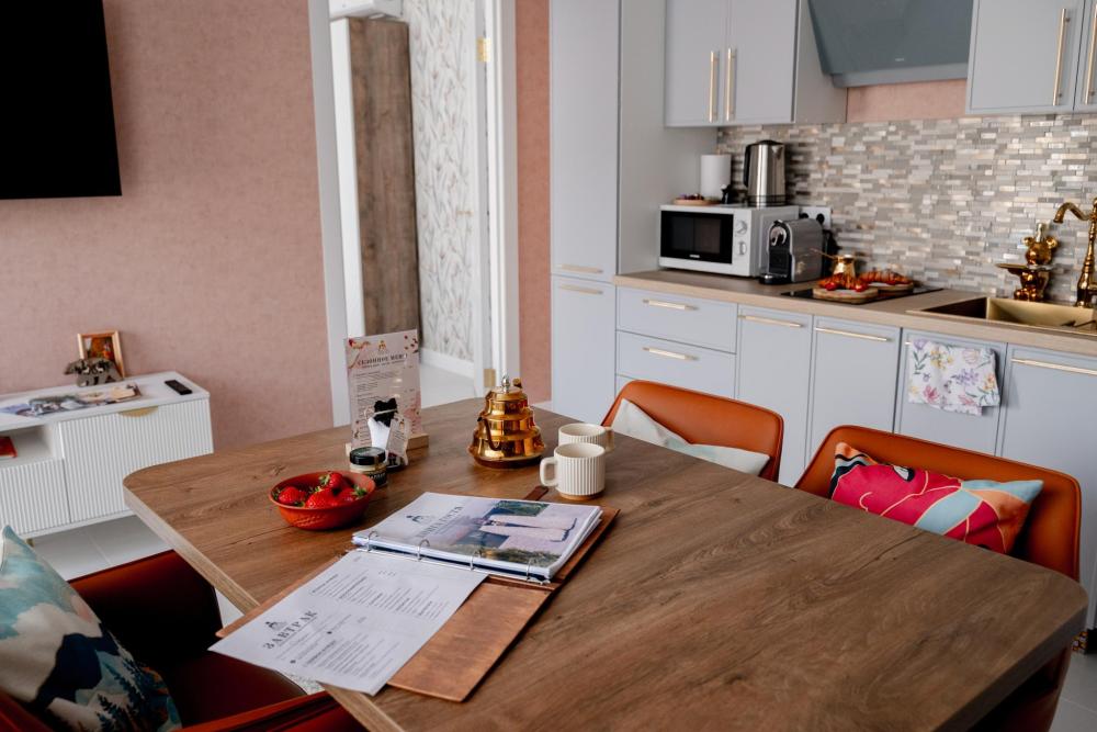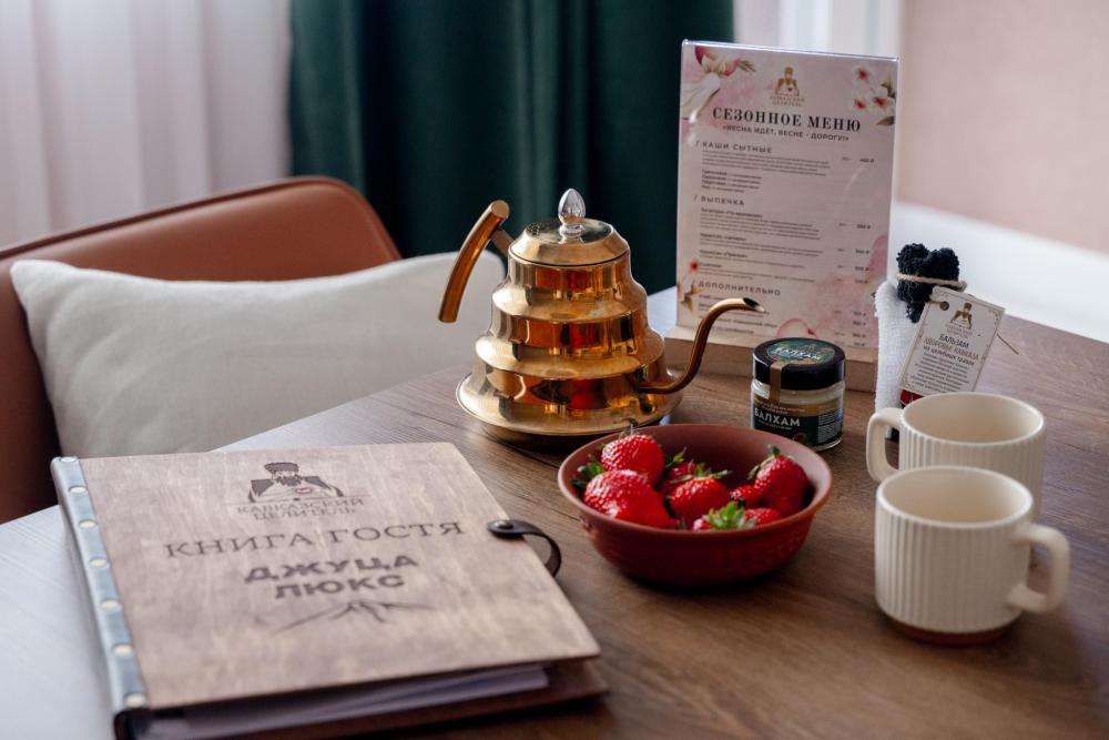 Премиальная вилла "Джуца ЛЮКС" идеальное место для тех, кто ценит комфорт и эксклюзивный отдых. Вилла, объединяющая современный дизайн и природную красоту. Просторная спальня, гостиная с уютным диваном и полностью оборудованной кухней — идеальное место для отдыха, встреч с близкими или романтических вечеров. В кухне есть все необходимое для приготовления любимых блюд, чтобы сделать ваш отдых максимально комфортным. Главная изюминка виллы — изолированная терраса с собственным горячим бассейном, ваш личный уголок уединения и комфорта. По запросу предоставляем кровать-манеж или еврораскладушку.