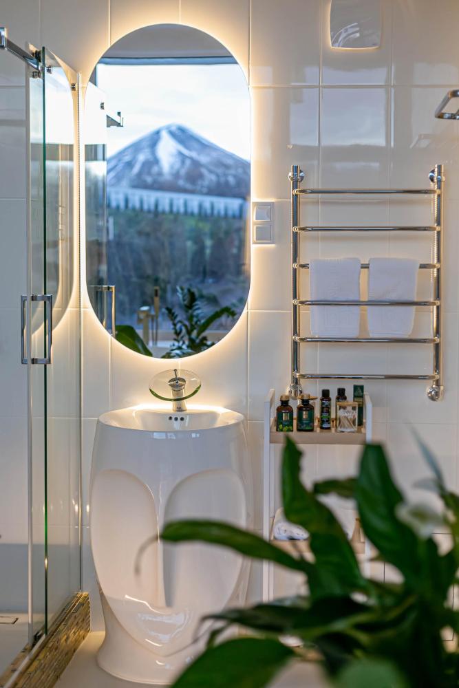 Премиальная вилла "Машук ЭЛИТ" - особенная эстетика отдыха в парк-отеле. Для гостей предусмотрена роскошная спальня с панорамным видом на гору Машук, с выходом на террасу к собственному бассейну с горячей водой. Летний дизайн кухни дарит свежесть и легкость, создавая атмосферу отдыха и расслабления. Вилла словно создана для непревзойденной романтики и любви, которая прослеживается в каждой детали интерьера. В вилле предусмотрено все необходимое для Вашего удобства: двухместная кровать с мягким постельным бельем, кресло/кровать, современный большой телевизор с приложением "Кинопоиск", кондиционер для поддержания оптимальной температуры, сейф, кухонное оборудование. Рекомендовано размещение до 3-х персон.