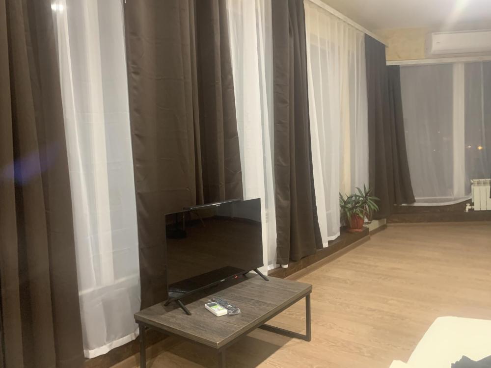Номер расположен на 8 этаже. В номере большая двуспальная кровать размер "King Saiz". К услугам гостей: телевизор с плоским экраном,стол журнальный,купе для одежды,стулья,прикроватная тумба,письменный стол,диван для прихожей, панорамный вид из окна на основные достопримечательности города курорта,на гору "Машук". Предоставляется посуда. В номере чайный набор: чай, кофе. Работает фен,кондиционер. Для гостей - постельные принадлежности,полотенца, тапочки,косметика для личной гигиены и др.Доступен бесплатный интернет. Санузел находится вне номера в 1 метре от комнаты, без доступа к нему посторонним гостям.