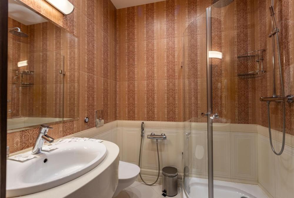 Изысканный интерьер Восточного номера располагает к приятному отдыху вдали от городской суеты. В номере большая кровать king-size с ортопедическим матрасом для крепкого сна, мягкие кресла, хаммам «Звёздное небо» и джакузи, отделённые от спальной зоны стеклянной перегородкой. Посещение бассейна, хаммама, финской сауны входит в стоимость.