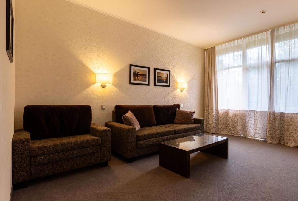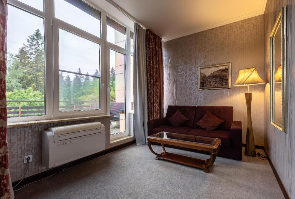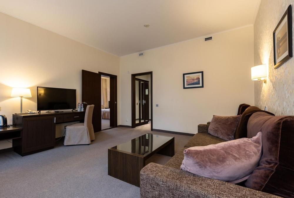 Отдыхайте с комфортом всей семьёй в светлом 2-комнатном Семейном номере, с балкона которого открывается прекрасный вид на природу. В спальне – одна большая или две раздельные кровати с ортопедическими матрасами для здорового сна, в гостиной – удобная мягкая мебель, в том числе раскладной диван, который может служить дополнительным спальным местом. Посещение бассейна, хаммама, финской сауны входит в стоимость.