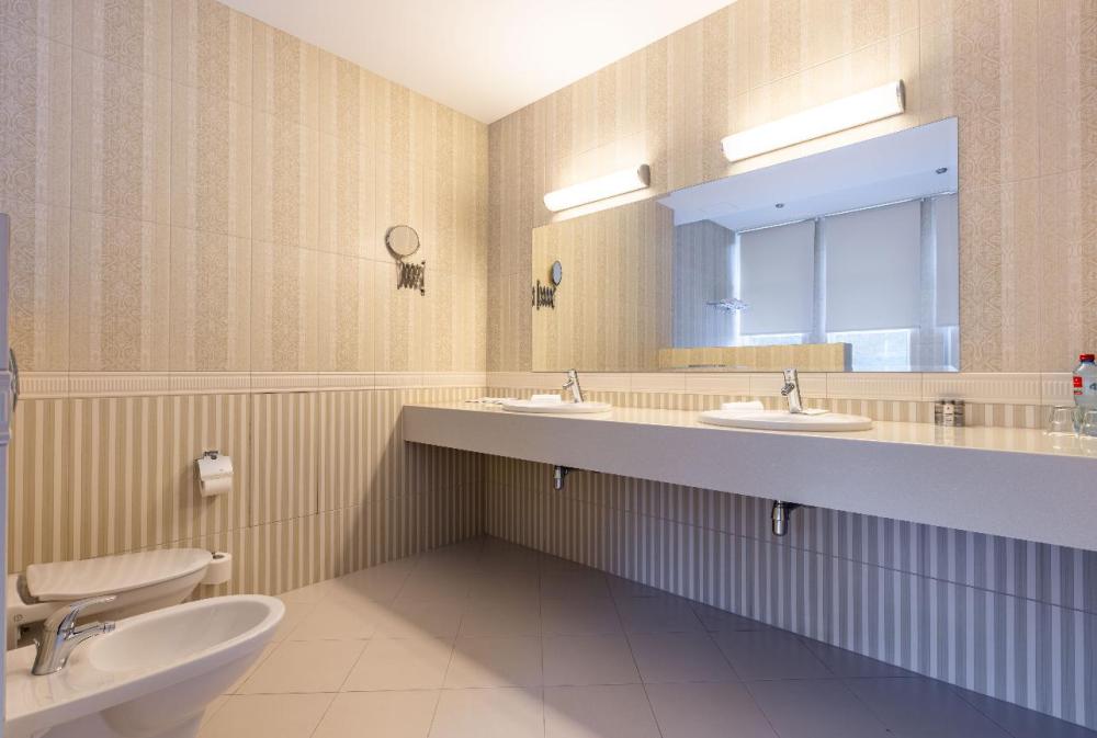 Ощутите роскошь и комфорт просторного 2-комнатного номера Гранд Люкс с собственной летней террасой. В спальне вас ждёт двуспальная кровать с ортопедическим матрасом для крепкого сна, в гостиной – мягкий угловой диван для приятного отдыха, рабочая зона с двумя письменными столами и обеденный стол, за которым приятно устроить семейную или дружескую трапезу. Посещение бассейна, хаммама, финской сауны входит в стоимость.