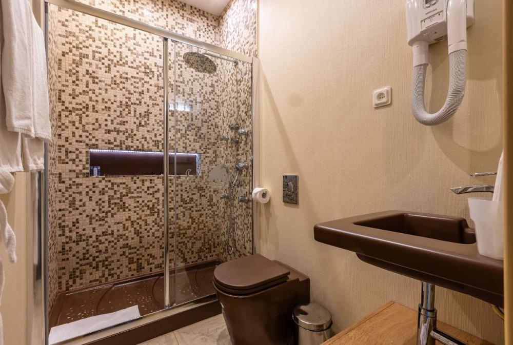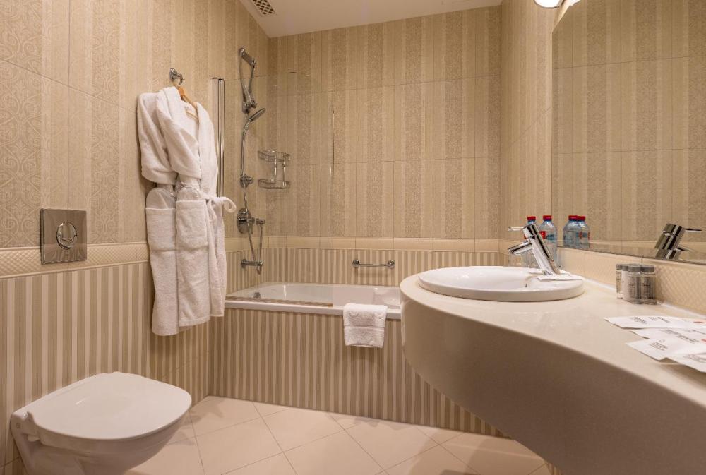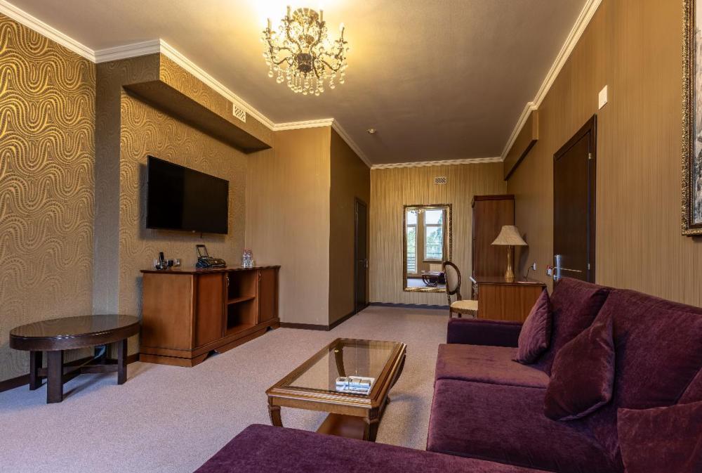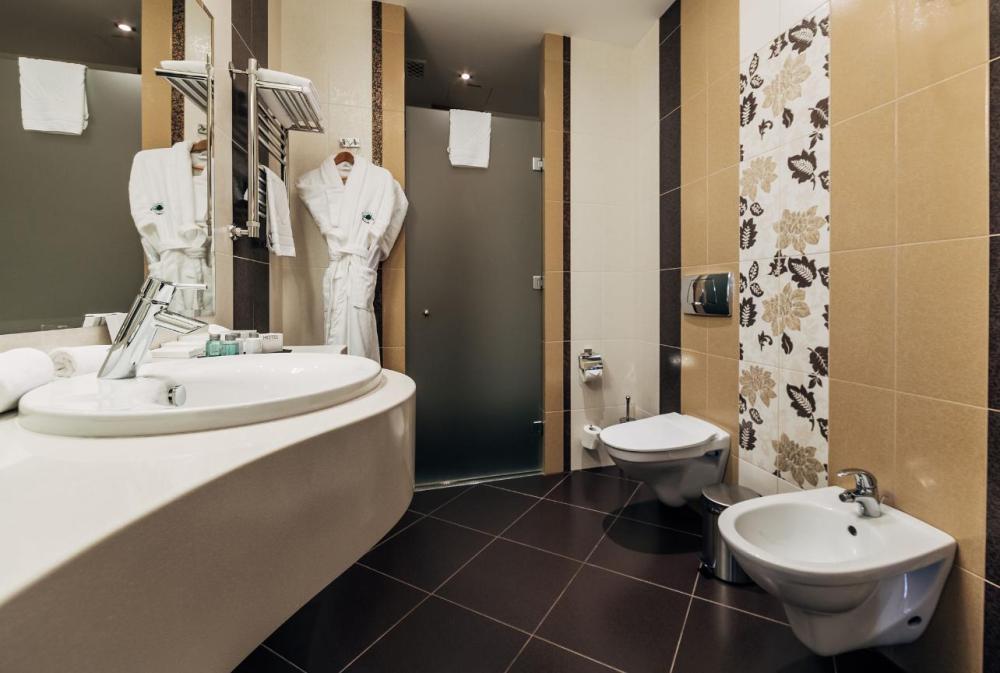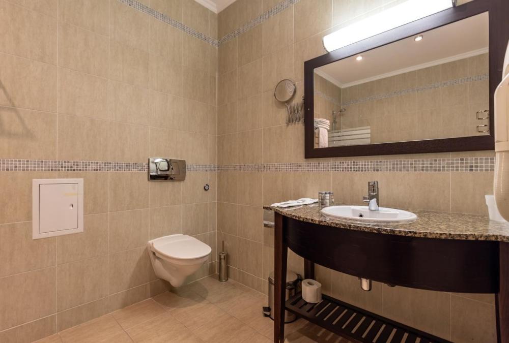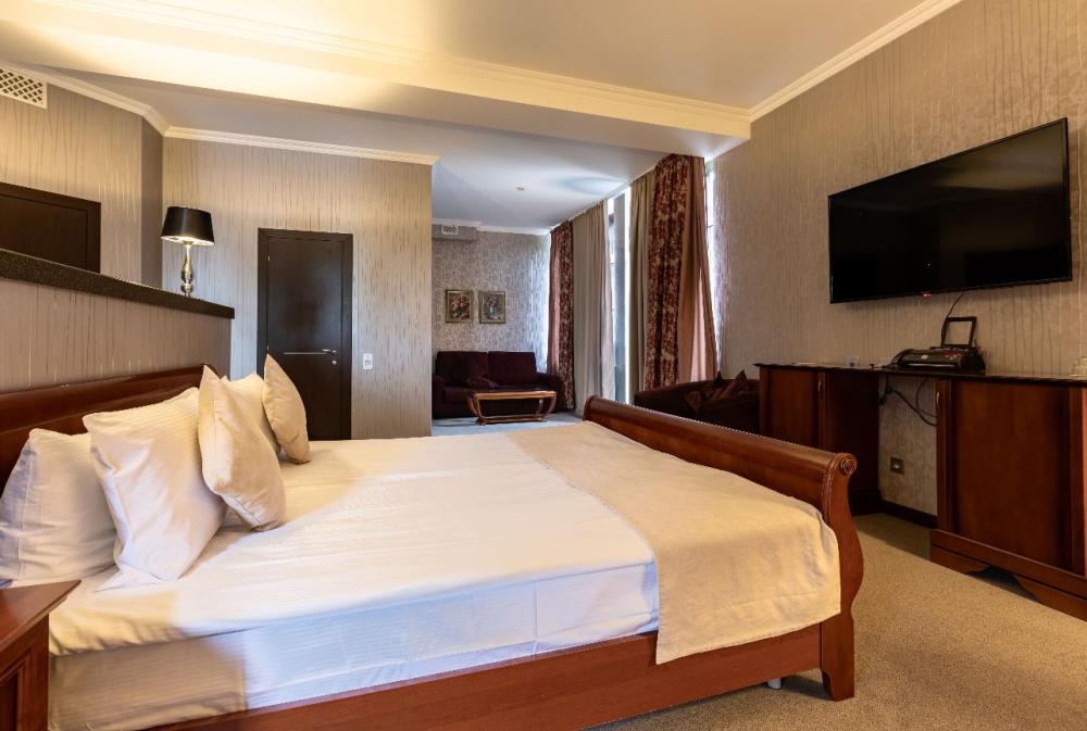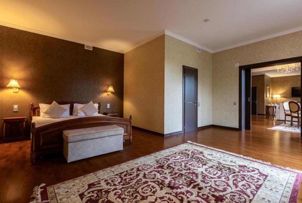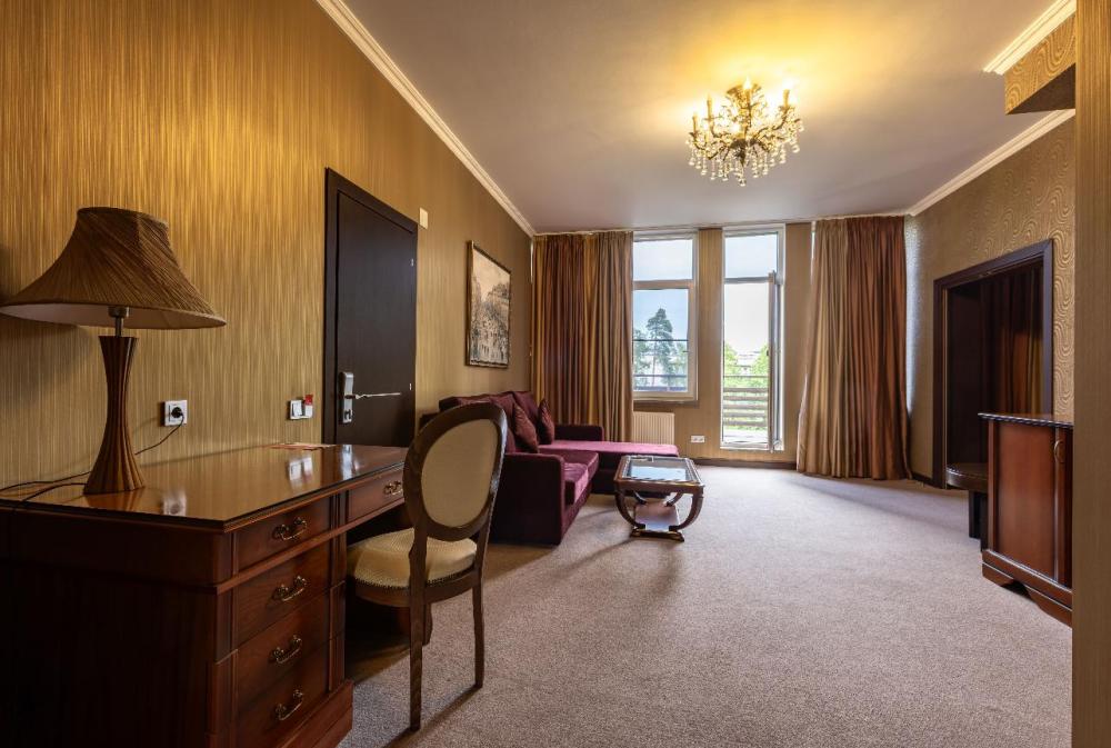 Отдохните от городской суеты, наслаждаясь красотой природы и свежим воздухом на собственной меблированной террасе просторного номера Элеганс. Большая двуспальная кровать king-size с ортопедическим матрасом подарит вам безмятежный сон, удобный письменный стол позволит уделить время делам, а мягкое кресло с журнальным столиком – приятно провести время с книгой и чашечкой кофе. Посещение бассейна, хаммама, финской сауны входит в стоимость.