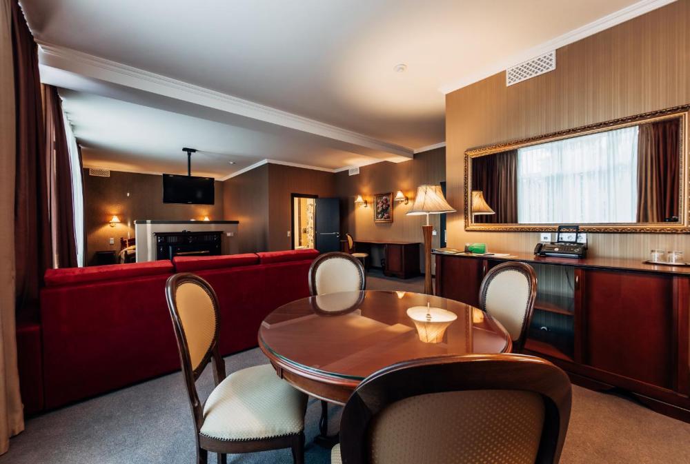 Наслаждайтесь загородным отдыхом в просторном номере Гранд с электрическим камином и собственной террасой, где в летний период выставляется плетёная мебель для приятного времяпрепровождения. Большая кровать с ортопедическим матрасом подарит вам безмятежный сон, а рабочая зона с двумя письменными столами позволит сосредоточиться на делах. В гостиной зоне – элегантная мягкая мебель для отдыха и обеденный стол для обедов и ужинов в кругу близких. Посещение бассейна, хаммама, финской сауны входит в стоимость.
